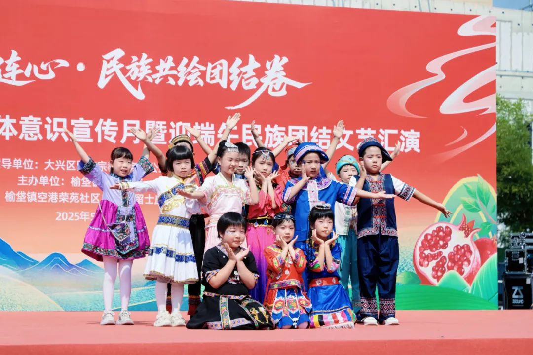 粽叶飘香传温情,石榴结籽心连心。为铸牢中华民族共同体意识,传承弘扬中华优秀传统文化,5月28日,由大兴区民族宗教事务办公室指导,榆垡镇人民政府主办的 “榆垡石榴籽连心 民族共绘团结卷” 主题文艺汇演,在空港荣苑社区广场热闹开场。200 余名师生代表、社区居民和社区工作者等共赴这场民族文化盛宴。
