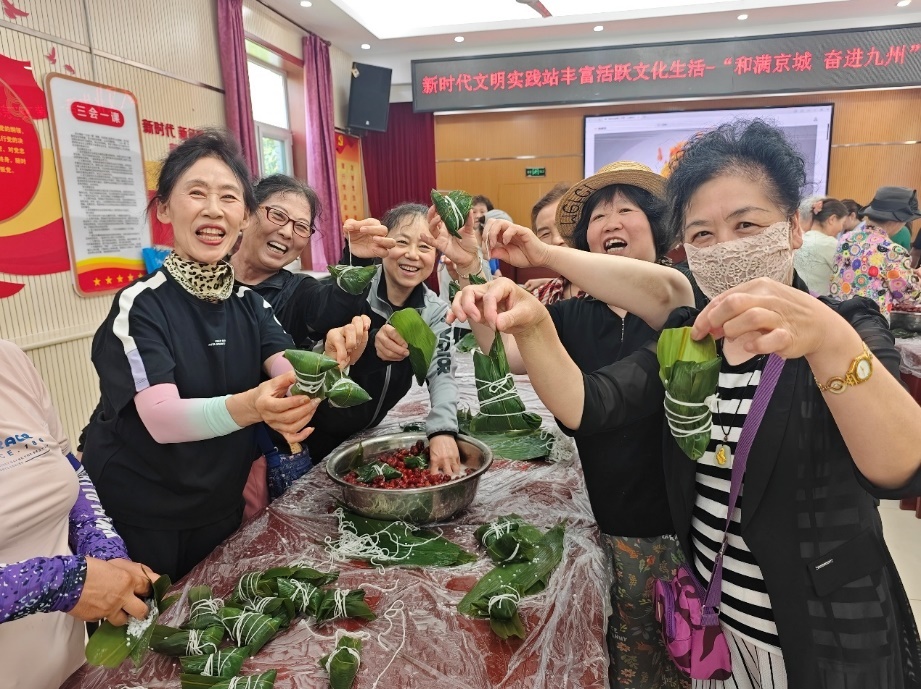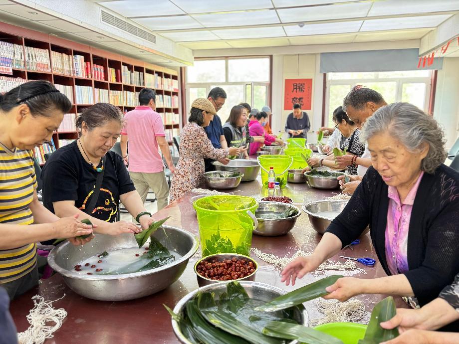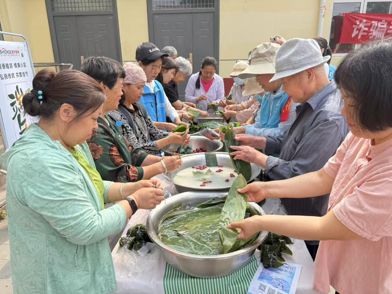 安贞街道安贞里社区党委开展了“‘粽'要传承 党员先行”端午节活动。社区居民们热情高涨,积极参与到包粽子的环节中。
