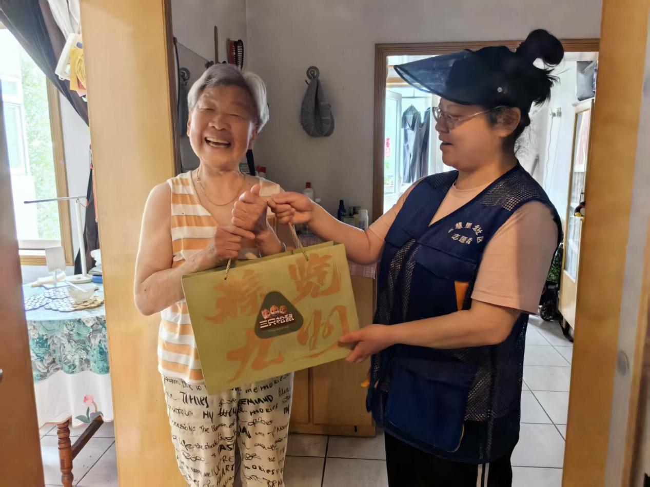 包粽子活动结束后,社工们组织居民党支部成员们一起,带着刚刚包好的粽子,对社区内的困难老人和独居老人进行慰问。大家亲切地与老人们交谈,询问他们的生活状况和身体情况,为他们送上节日的祝福和温暖的关怀。