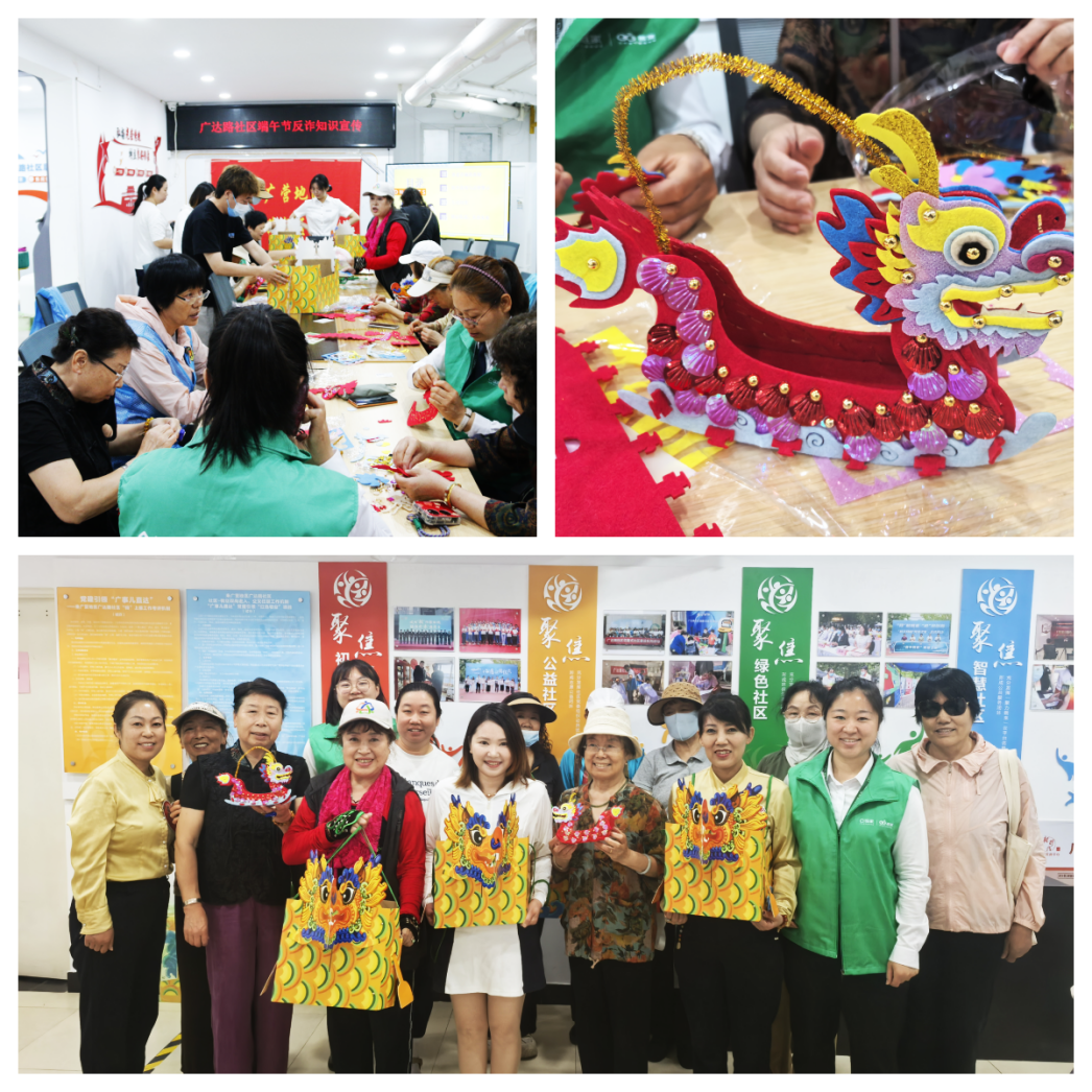 广达路社区联合辖区单位开展“浓情端午节,巧手制龙舟”活动,将端午传统文化和非遗手工相结合,让居民在浓厚的节日氛围中感受传统文化的魅力。活动中,居民们的龙舟DIY之旅从选材、裁剪、粘贴到最后的装饰,每一步都充满了挑战和乐趣。居民在志愿者的协助下,认真地制作着自己的龙舟,当最后一道工序完成时,居民们兴奋地举起自己的作品,展示着劳动成果。