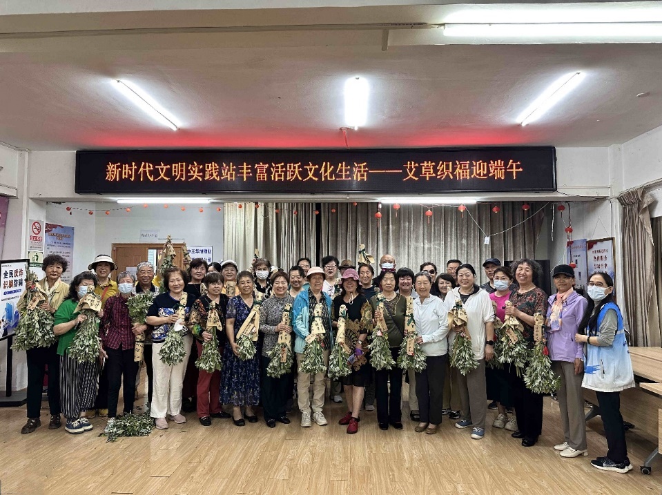 朝阳区东风苑社区新时代文明实践站精心策划开展“粽享端午 艾香传情”主题活动,通过包粽子、制作艾草手作、走访慰问等形式,让传统节日焕发新活力。活动中,经验丰富的阿姨手把手传授技巧,年轻居民认真学习,卷粽叶、填糯米、捆棉线,不一会儿,形态各异的粽子摆满桌面。另一边,艾草枕和艾草锤制作区同样热闹非凡,居民们将晾晒好的艾叶装入棉布,穿针引线缝制出实用又美观的养生手作。实践站还设置了端午知识问答环节,围绕节日起源、习俗文化等内容展开互动。