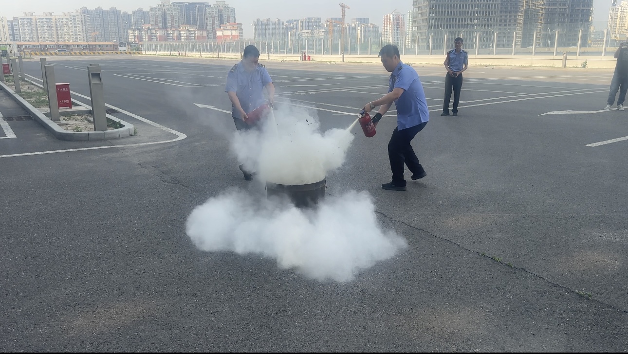 理论讲解结束后,培训进入到实践操作环节。在丰台站东落客平台停车场的空地上,消防警官现场演示了灭火器和消火栓的正确使用方法。警官一边操作,一边大声讲解动作要领:“使用灭火器时,要先提起灭火器,拔掉保险销,在距离火焰2-3米处,握住喷管最前端,对准火焰根部,压下压把,由近及远、左右扫射……”,参训人员认真观摩,随后纷纷上前,在警官的指导下亲身体验灭火器和消火栓的使用。大家按照操作步骤,成功扑灭了模拟火源,在实践中掌握了消防器材的使用技巧。
