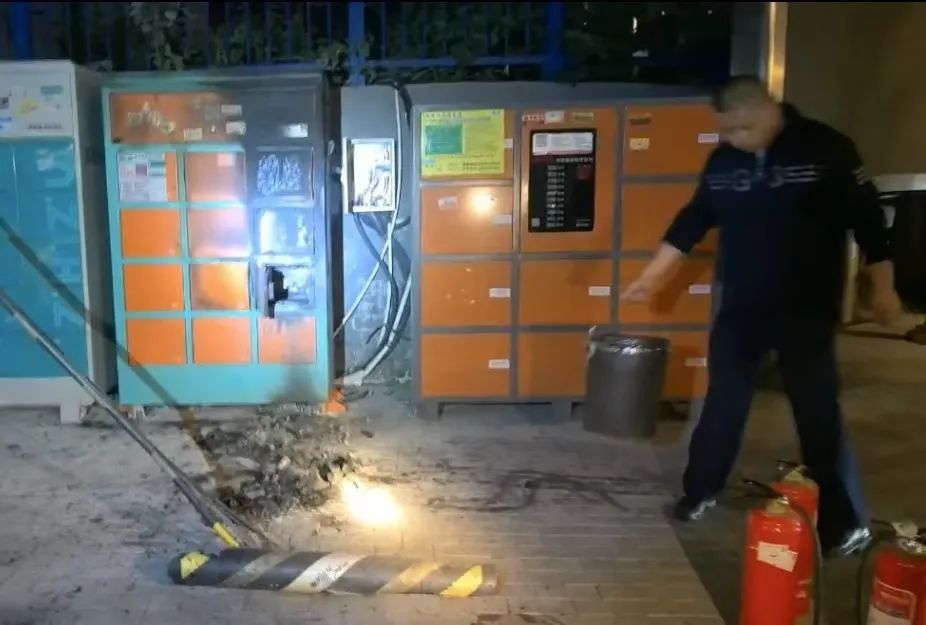 当天22:30分左右,微型消防站队员段回杰在巡逻时,看到不远处有火光冒出,他立即向火源方向赶去核实情况,同时通知其他两名微型消防站队员赶往现场,三人到场后发现是电动自行车电池充电柜内1块电池起火,便立即根据人员岗位分工,一名微站队员立即对周围的群众进行疏散,另外两名微站队员对充电柜进行断电,并使用灭火器对准起火部位进行灭火;直至明火被全部扑灭后,将电池取出用凉水对其进行降温,避免电池复燃。