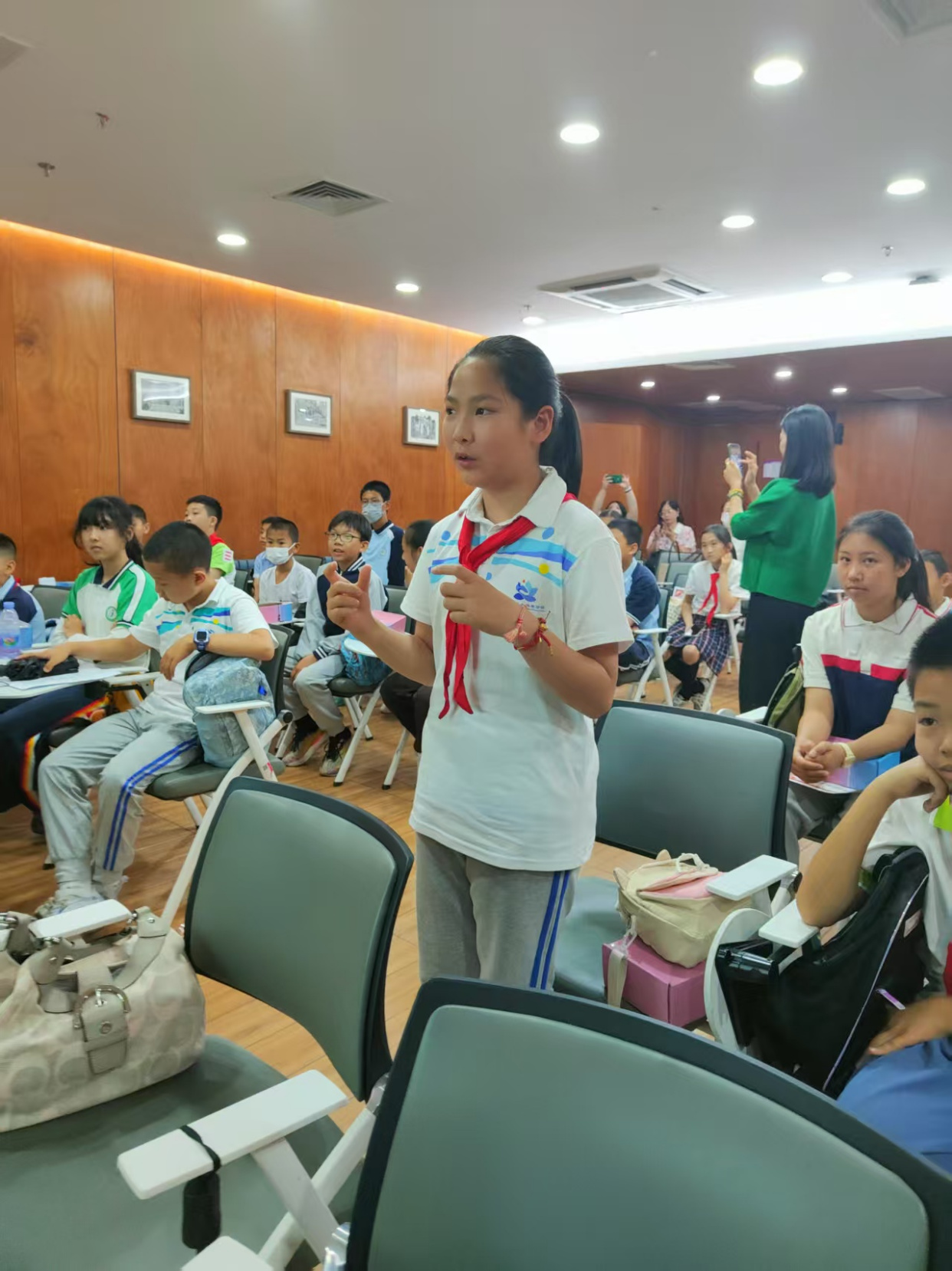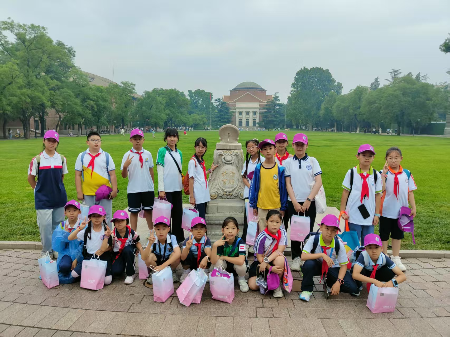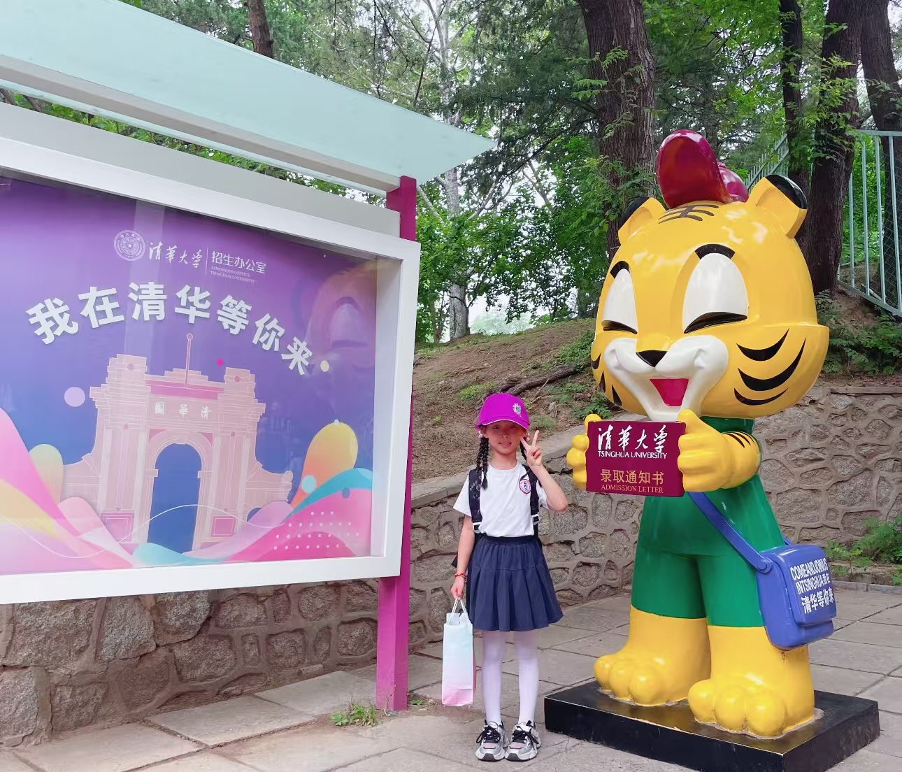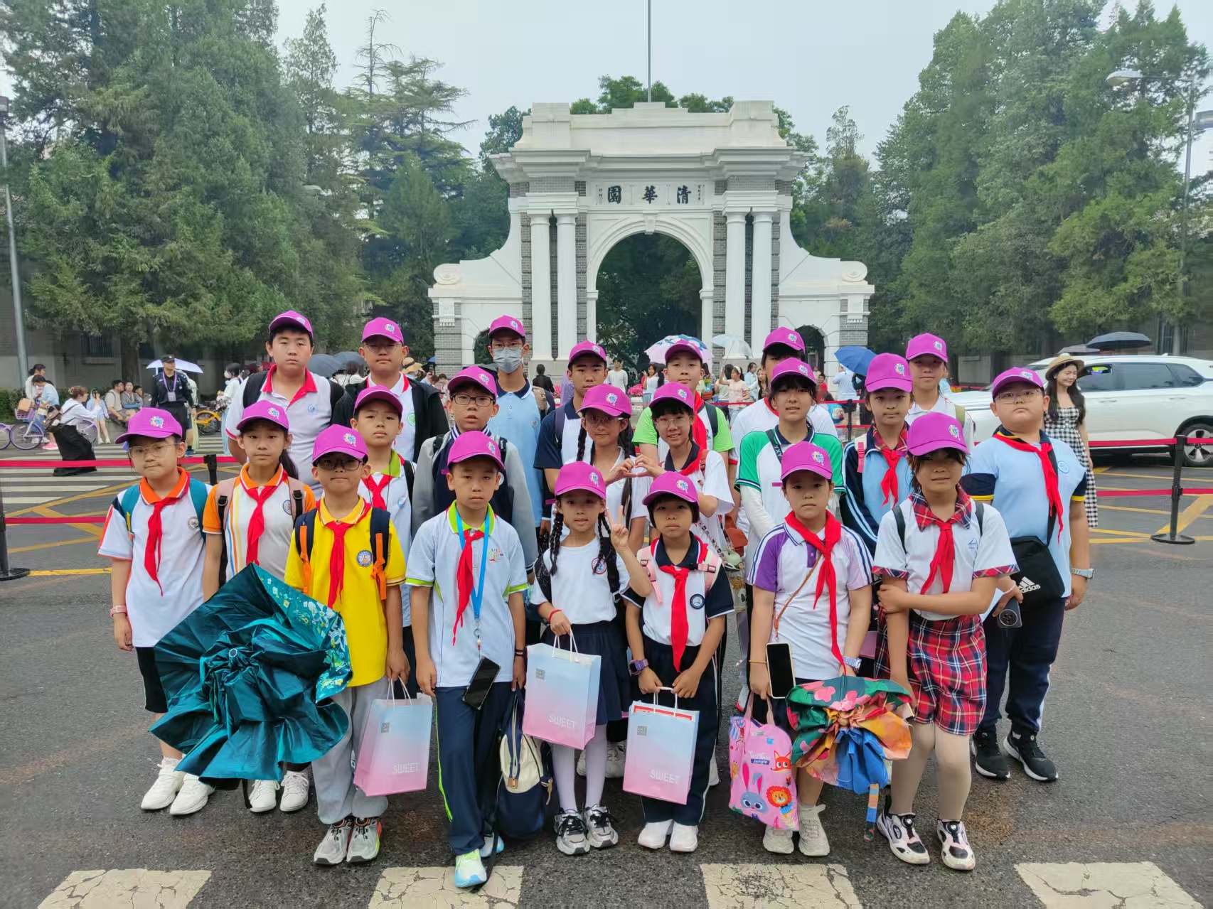 仪式后,清华大学两位优秀学长和创新人才发展中心的老师们带领同学们开启清华校园探秘之旅。淅淅沥沥的细雨中,清华二校门、清华日晷、大礼堂、图书馆、招生办公室、露天泳池,一处处典型建筑里,两位学长给同学们讲解着百年学府的历史脉络;漫步在清华校园中,古色古香的建筑与现代化的大楼交相辉映,大礼堂的庄重、图书馆的静谧、“无体育不清华”的体育精神、“为祖国健康工作五十年”的理念都让孩子们惊叹不已,一名五年级学生在参观后眼睛闪亮,兴奋地跳起来说:“我要把今天看到的清华美景画下来,以后也要努力考上这里,研究更厉害的环保技术!”
