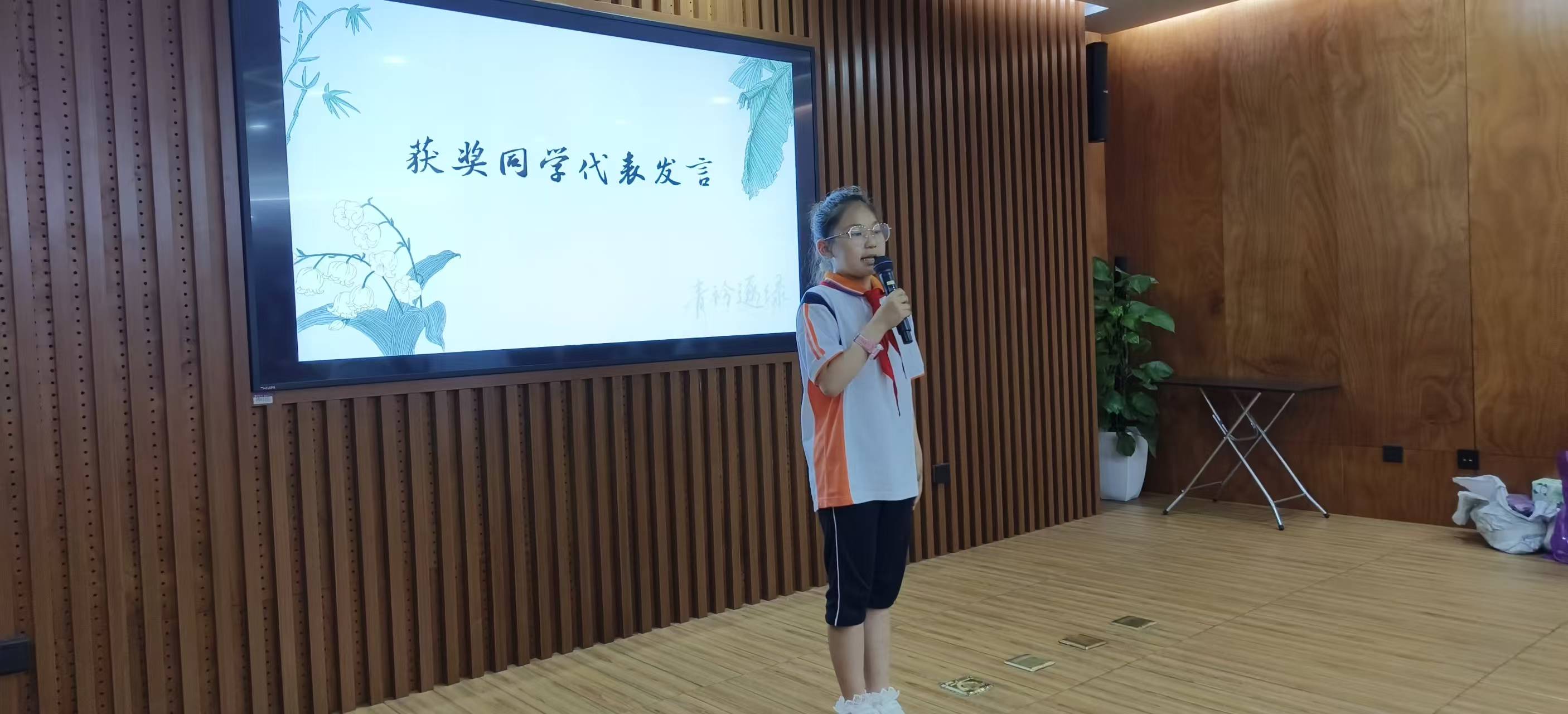 随后,北京读懂中国与经济发展基金会主任何莲主持了颁奖环节,在热烈的掌声中,40名“低碳小达人”依次上台领奖。这些孩子来自丰台区的40所中小学,每所学校都选派了一名在碳普惠活动中表现突出的“低碳小达人”学生代表,来自北京教育学院丰台分院附属学校的袁晓舆同学,脸上洋溢着自信与坚定走上了讲台,作为丰台学生代表分享了自己的感悟与收获:“参加碳普惠活动后,我不仅学会了二手衣物、塑料瓶等品类是如何再生利用,减少碳排放的,还了解到原来关灯、节水这些小事,都是在为地球减负……今后我将发动身边更多人一起保护地球,从节约每一张纸,每一滴水开始,用习惯守护蓝色星球,让地球妈妈永远露出灿烂的笑容。”