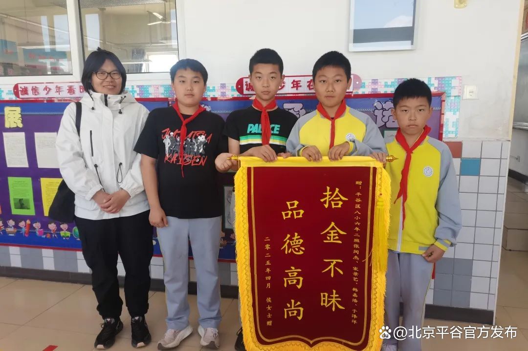 日前,一面印有“拾金不昧 品德高尚”的锦旗被送到平谷区第八小学。失主对张闰杰、于泽洋、宋景艺、韩嘉浩四名学生表示由衷的感谢。