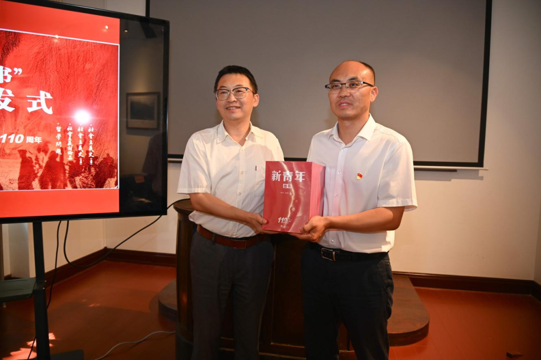 潘鹏代表中央编译出版社向纪念馆赠送了《新青年丛书》。