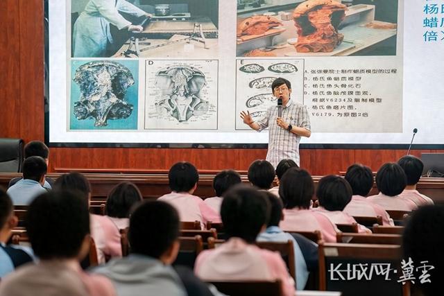 中国科学院老科学家科普演讲团成员王原走进石家庄市第四十一中学,以《听化石的故事》为题作专题演讲。长城网·冀云客户端记者 康义涵 摄
