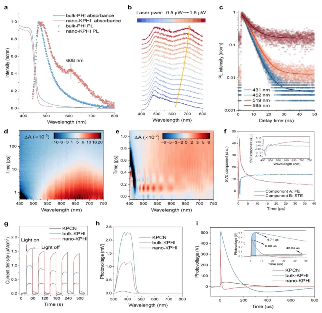 图4.光物理特性揭示nano-KPHI中的激子自陷行为