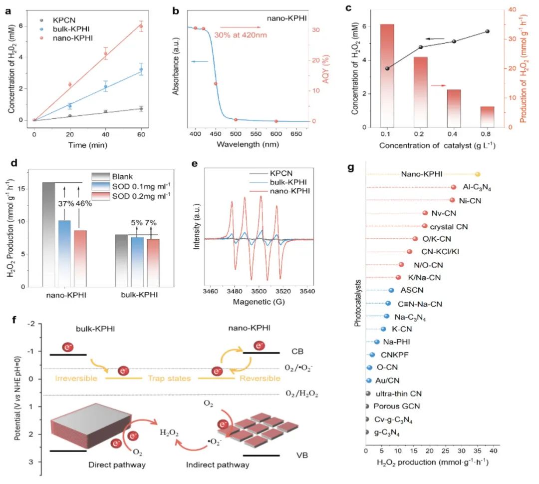 图5.光催化H₂O₂生成性能及反应路径分析