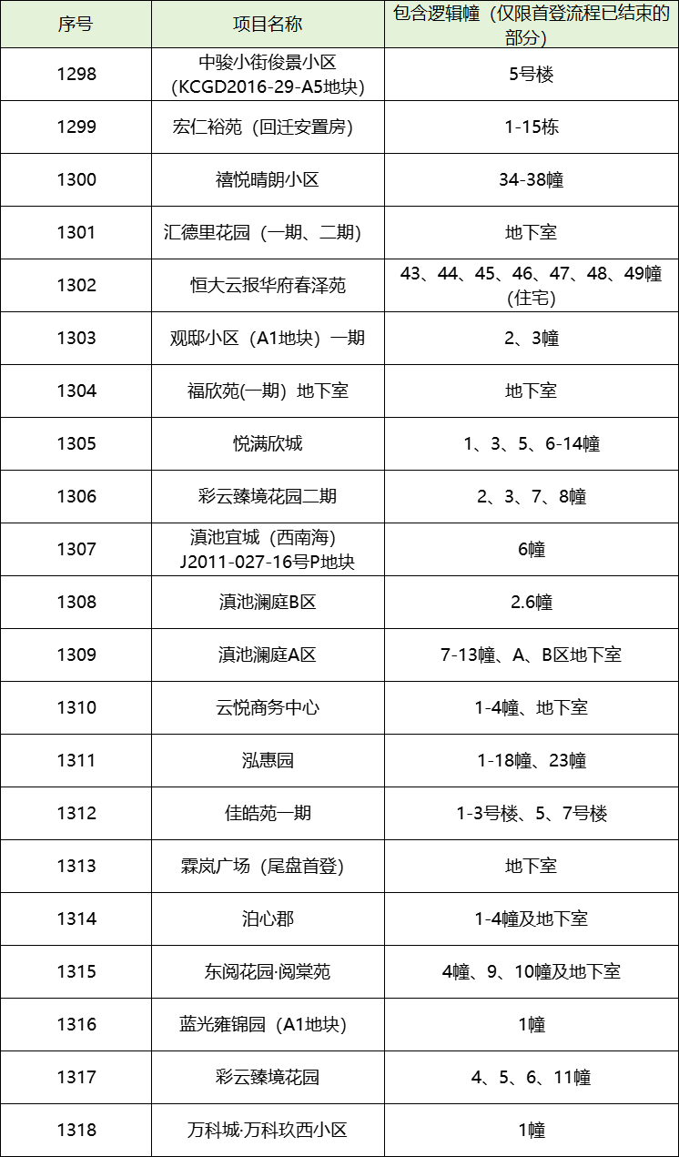 2.上述项目清单均为本次新增,更多项目清单可在昆明不动产微信公众号往期精彩中查询。