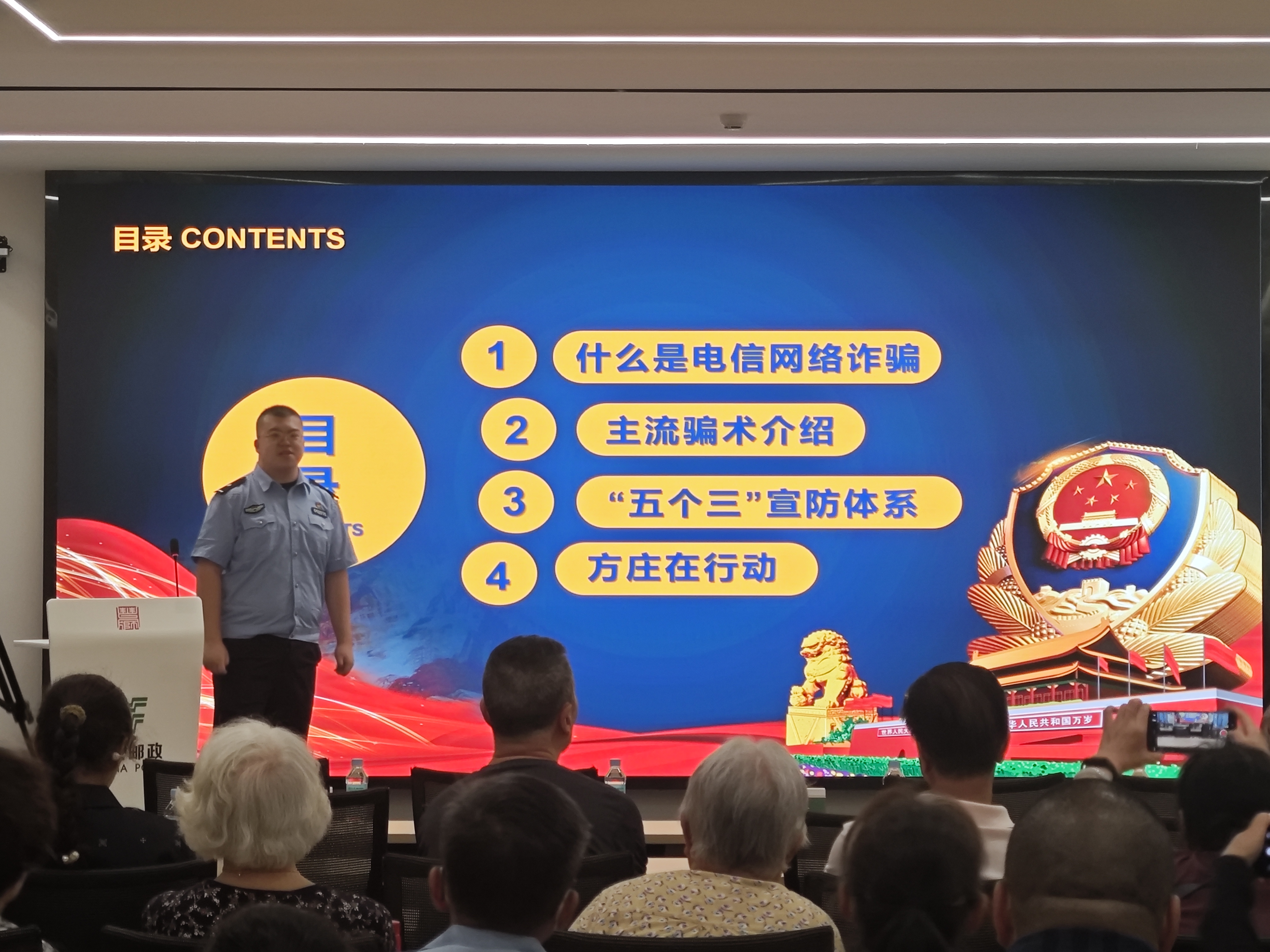 活动尾声,方庄派出所民警带来一堂生动的反诈课,深入剖析刷单、冒充公检法、养老诈骗等最新手法,拆解套路并传授实用防骗技巧。穿插其中的有奖问答环节点燃居民参与热情,反诈知识在寓教于乐中深入人心。