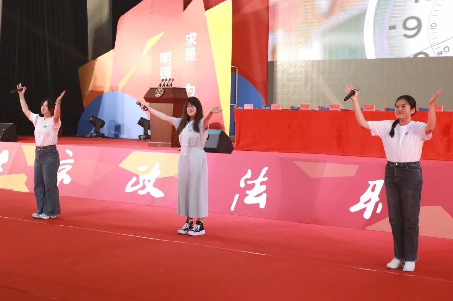在校生代表走上舞台,用歌声为学长学姐们饯行,旋律里流淌着青春最鲜亮的底色,既承载着往届学子无畏探索的足迹,亦传递着后辈勇敢追梦的热忱,在音符交织间勾勒出政法学子新老传承的动人画卷。