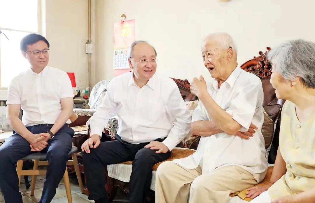 6月27日,殷勇到通州区看望慰问老党员和生活困难党员。家住梨园镇的73岁党员曹振宽是社区楼门长,因妻子身患疾病,家庭生活困难,在照顾妻子的同时他还积极协助社区开展志愿服务活动。殷勇询问老人家庭生活需求,为老人退休不退岗、热心服务社区建设的精神点赞。希望他继续发挥党员模范作用,积极传递正能量,力所能及支持社区工作,团结凝聚居民共建美好家园。有关方面要关心关爱困难党员,及时帮助他们解决实际困难。92岁老党员赵淑兰曾参与抗日战争,是儿童团成员,1946年7月入党,现住北苑街道。殷勇感谢老人为革命和建设事业作出的重要贡献,他说,今天来之不易的幸福生活,离不开像您这样的老党员作出的贡献。看到您身体硬朗,我们由衷感到高兴,祝您健康长寿。通州区要健全养老服务体系,满足好“老老人”对居家照护、家政服务等方面的需求。