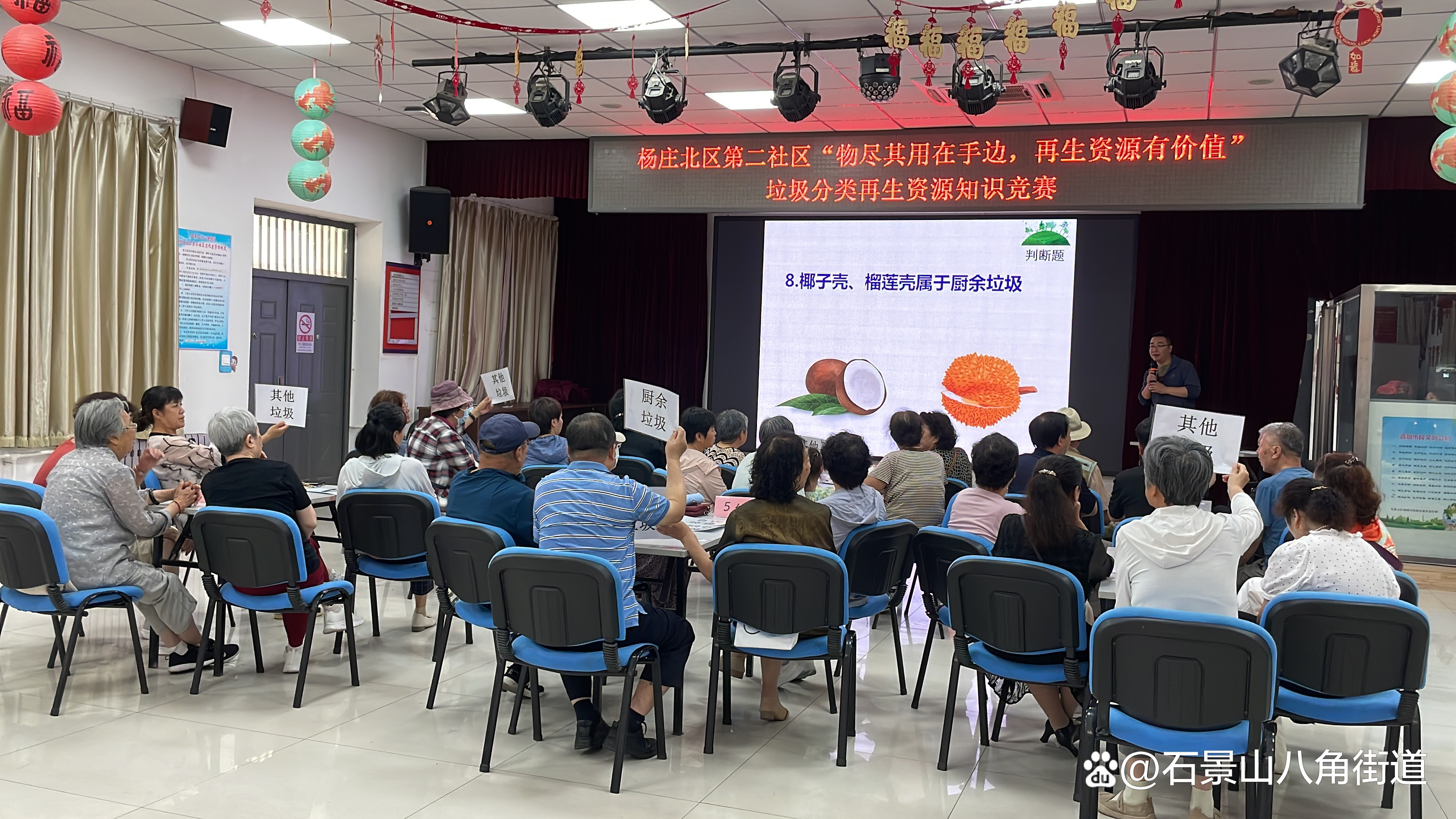 为倡导绿色文明的生活方式,让低碳环保理念深入人心,培养居民群众主动参与垃圾分类的意识,杨庄北区第二社区开展“物尽其用在手边,再生资源有价值”垃圾分类再生资源知识竞赛活动。