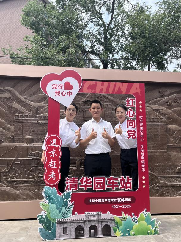 素白的卡片上,印着车站旧址的历史照片与“进京赶考”主题标语,执起笔,写下对党的祝福:“愿山河永固,初心如磐”“以青春之名,续‘赶考’新篇”……更特别的是,活动现场还设有“红色盖章处”,盖下章,让这枚承载着“赶考”记忆的印章,成为您与历史对话的见证。
