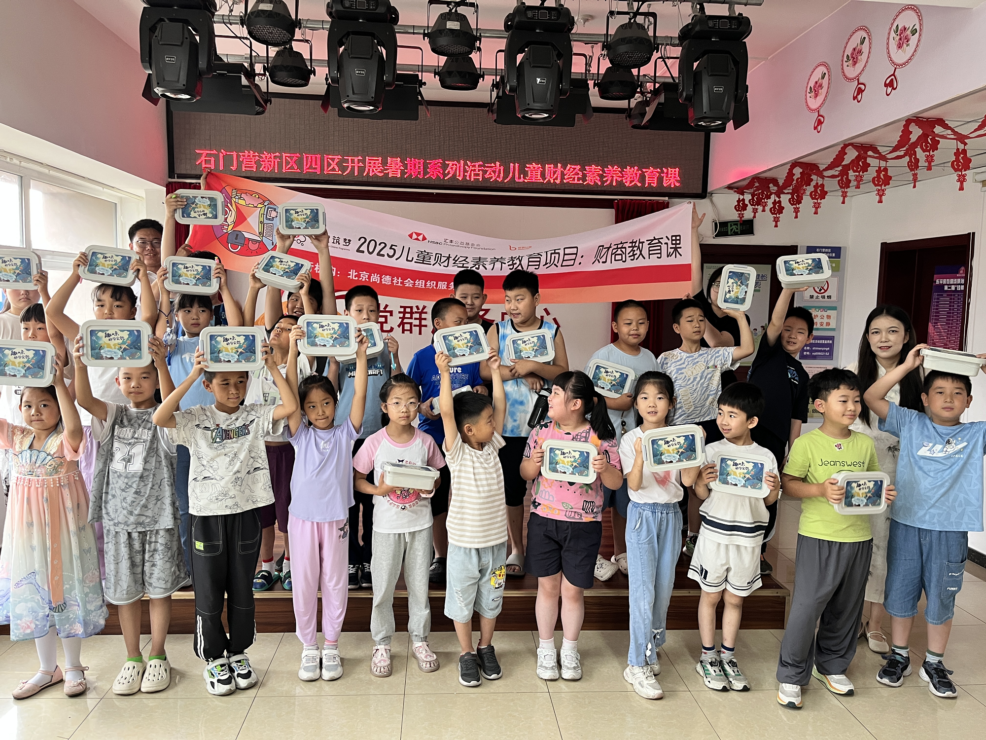 为提升儿童财经素养,培养理性金钱观,在北京汇丰公益基金会、佰特公益支持下,北京尚德社会组织服务中心于2025年6月30日—7月1日在石门营新区四区组织开展了“汇童筑梦-2025 社区儿童财经素养教育项目:财商课”,24名儿童参与其中,通过两天四堂课,在趣味互动中解锁财商知识,家长同步参与见证孩子成长。