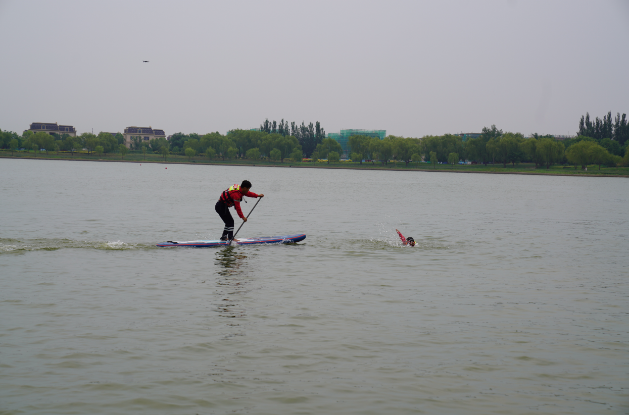 演练过程中,应急救援队伍严格按照洪涝灾害应急救援流程,密切配合,针对不同情况妥善处理,规范有序完成无人机搜寻、无人机投送物资、快速救援、抛绳包救援、活饵救援、桨板救援、翻舟自救、应急救护演练、心理救援演练等科目任务。巨匠队员主要承担了降板救援与岸上溺水心肺复苏演练两大关键任务。他们凭借精湛的专业技能和默契的团队协作,面对紧急情况,通过迅速制定救援方案、熟练精准的设备操控,标准规范的心肺复苏技能,顺利完成救援演练任务。