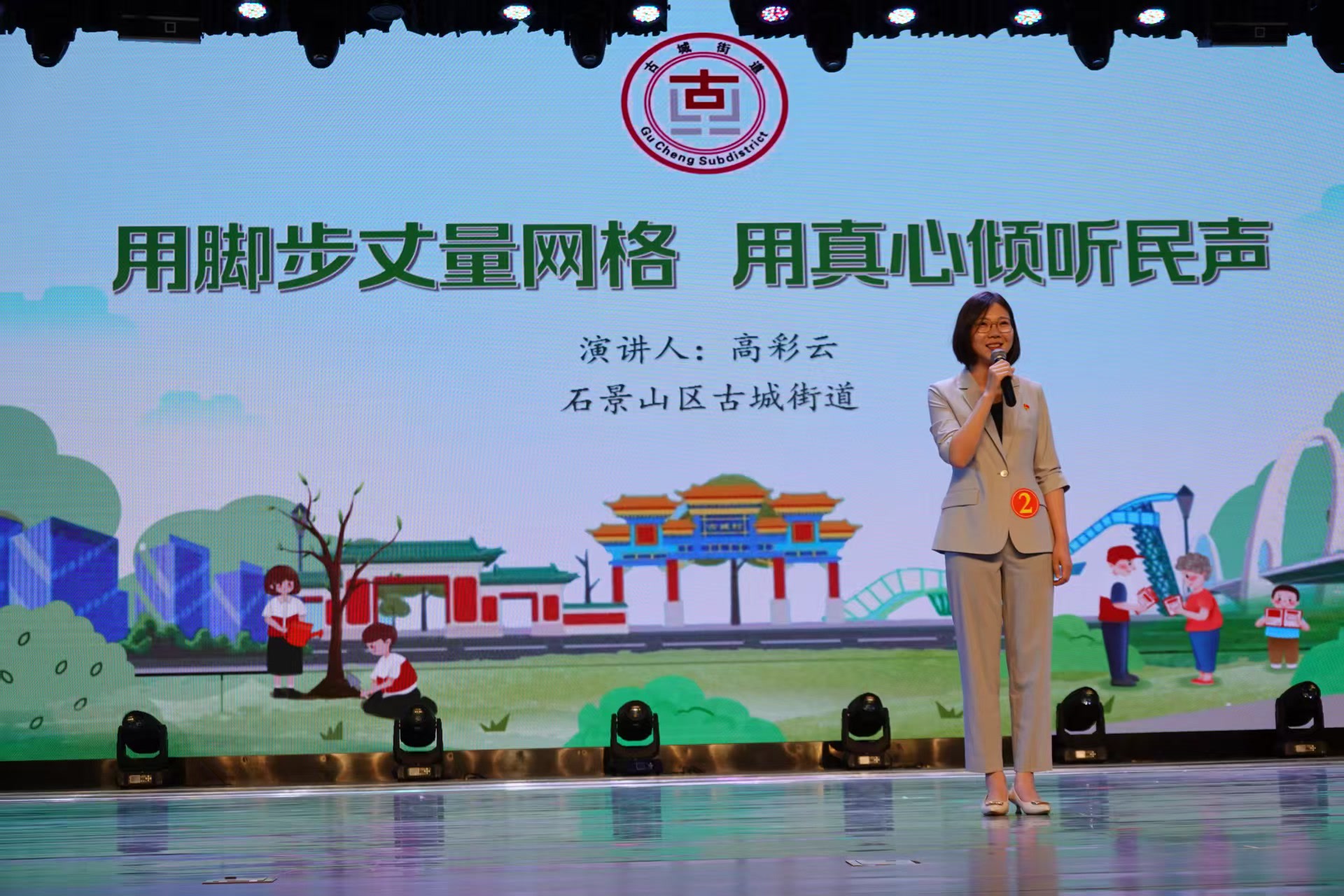 在演讲环节,选手们从不同角度分享了“智网实格”中的故事。八宝山街道的胡雯涵讲述《烧烤与高考》,让大家看到了网格员如何跨越障碍架起沟通桥梁;古城街道的高彩云以《用脚步丈量网格 用真心倾听民声》为题,展现了数据背后网格员的温情传递;鲁谷街道的高建平带来《人到格中去 情在网中结》,分享了激活网格力量、创新社区治理的经验;老山街道的聂超分享她如何在日复一日的穿行与守护中,将“千万事”化为“千万情”,用温情筑牢社区的基石;八角街道的王舒徐用独特视角讲述“智网实格”如何在社区里编织出幸福的经纬;广宁街道的张寻讲述在网格中服务的精度、速度与温度;金顶街街道的高晶带来“智网实格”如何扎根千年古道模式口这片沃土,既守护历史的记忆,更焕发现代的生机;苹果园街道的张雅欣将她与“智网实格”之间那些铭刻于心的故事娓娓道来;五里坨街道的程唯伟给大家分享来自西部浅山区小小网格员最朴素的幸福宣言。