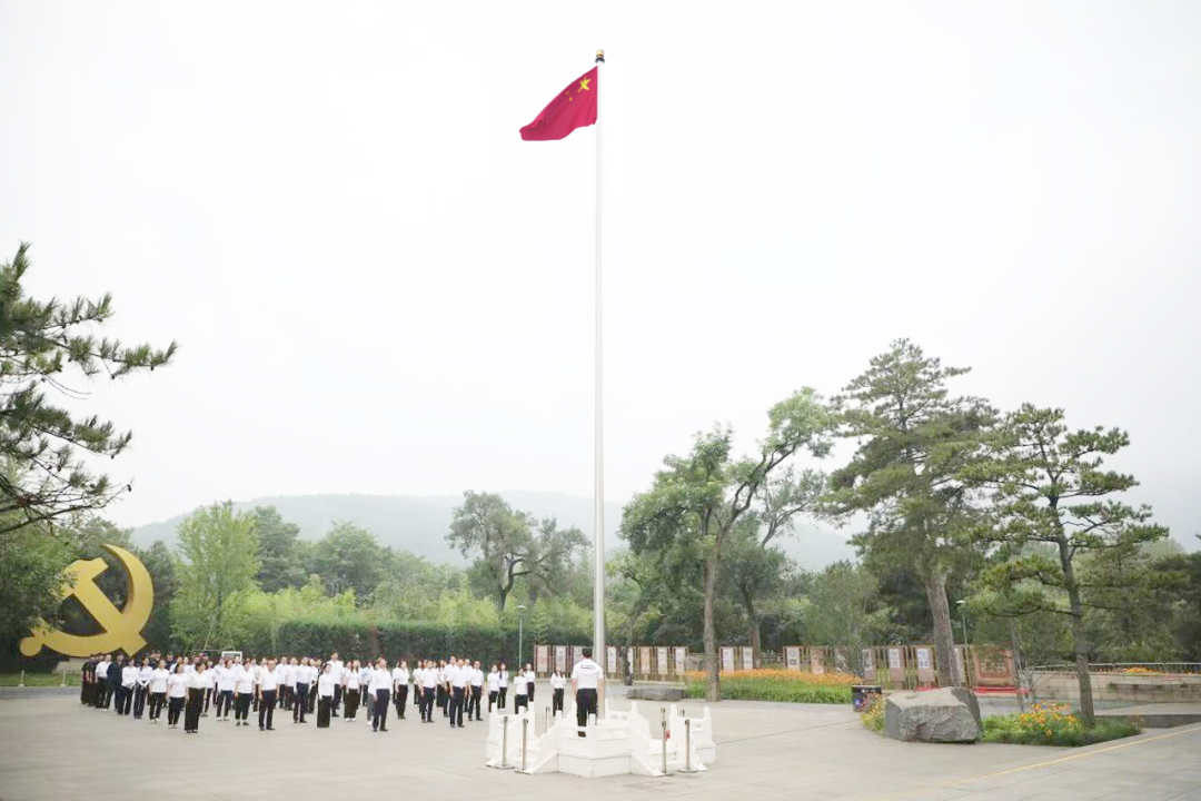 随着五星红旗缓缓升起,香山革命纪念馆全体干部和常驻馆服务保障单位员工庄严肃立,向国旗行注目礼,共同表达对祖国的热爱和敬意。