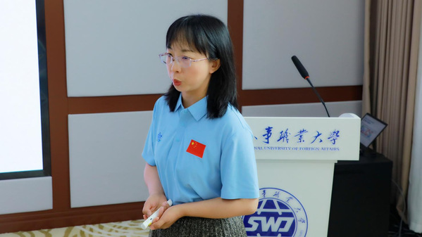 学员代表、来自马来西亚吉隆坡武术总会武术散打教练盛映翔发言。他表示,自己非常高兴受马来西亚吉隆坡武术总会指派前来学习。武术散打是每两年一届的马运会竞赛项目,2024年,山东外事职业大学武术散打教练曾受邀赴马来西亚指导训练,助力4名学生斩获2枚金牌、1枚银牌和1枚铜牌的佳绩。此次学习机会十分难得,他定会用心学习,扎实掌握武术散打竞赛规则、裁判方法及技战术,并在回国后精心训练队员,力争在10月于山东外事职业大学举行的“一带一路”暨金砖国家技能大赛(首届武术散打)中再获佳绩。