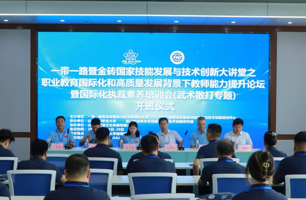 6月25日至29日,2025“一带一路”暨金砖国家技能发展国际联盟与技术创新大讲堂之“职业教育国际化和高质量发展背景下教师能力提升论坛暨国际化执裁素养培训班(武术散打专题)”在山东外事职业大学成功举办。来自国内外高校、行业协会、俱乐部的40余名专家、教师、教练齐聚一堂,共同开启武术散打裁判专业能力提升之旅。