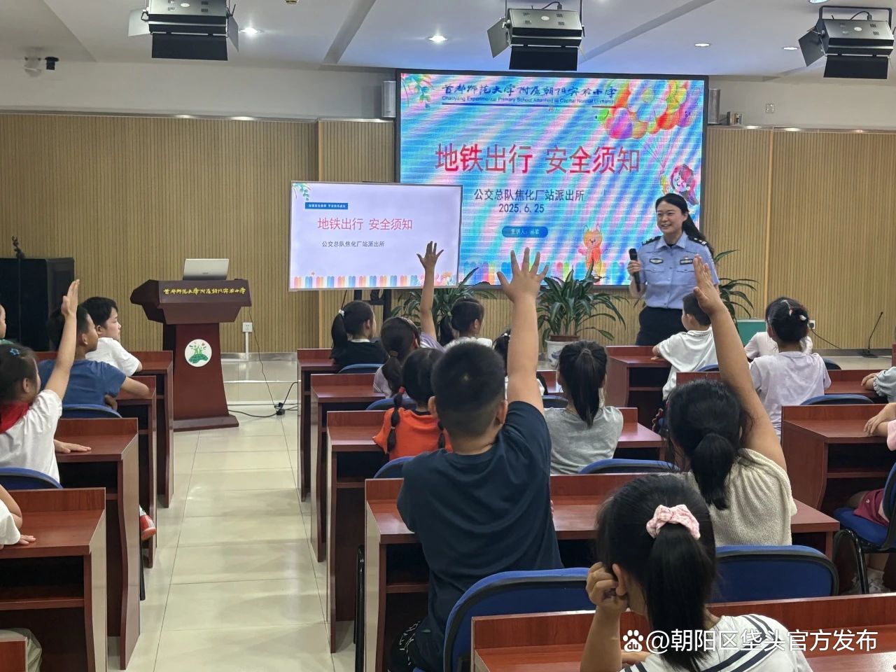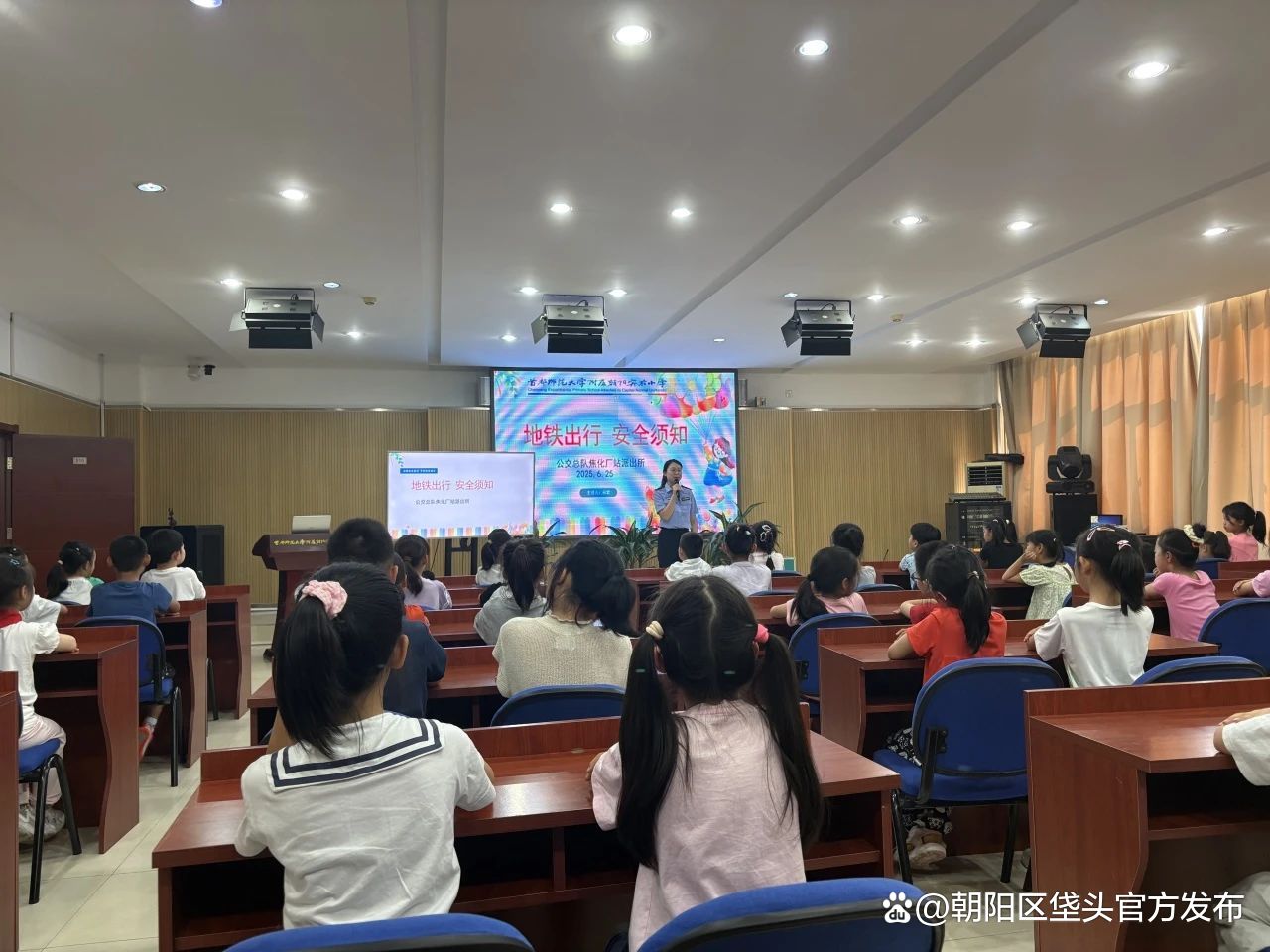 为进一步增强青少年地铁出行安全意识,筑牢学生暑期安全防线,近日,垡头街道联合公交总队焦化厂站派出所、首都师范大学附属朝阳实验小学翠南校区共同举办地铁出行安全进校园活动。本次活动紧扣“地铁出行 安全须知”主题,特别邀请公交总队焦化厂站派出所民警丛岩担任主讲人,从“文明乘车”“乘梯规范”“设备防护” 三个维度,带来了一场干货满满的地铁安全知识分享。