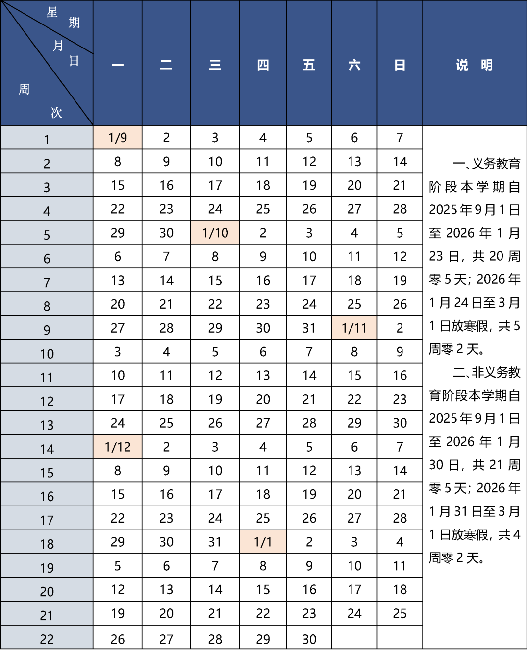 第一学期校历