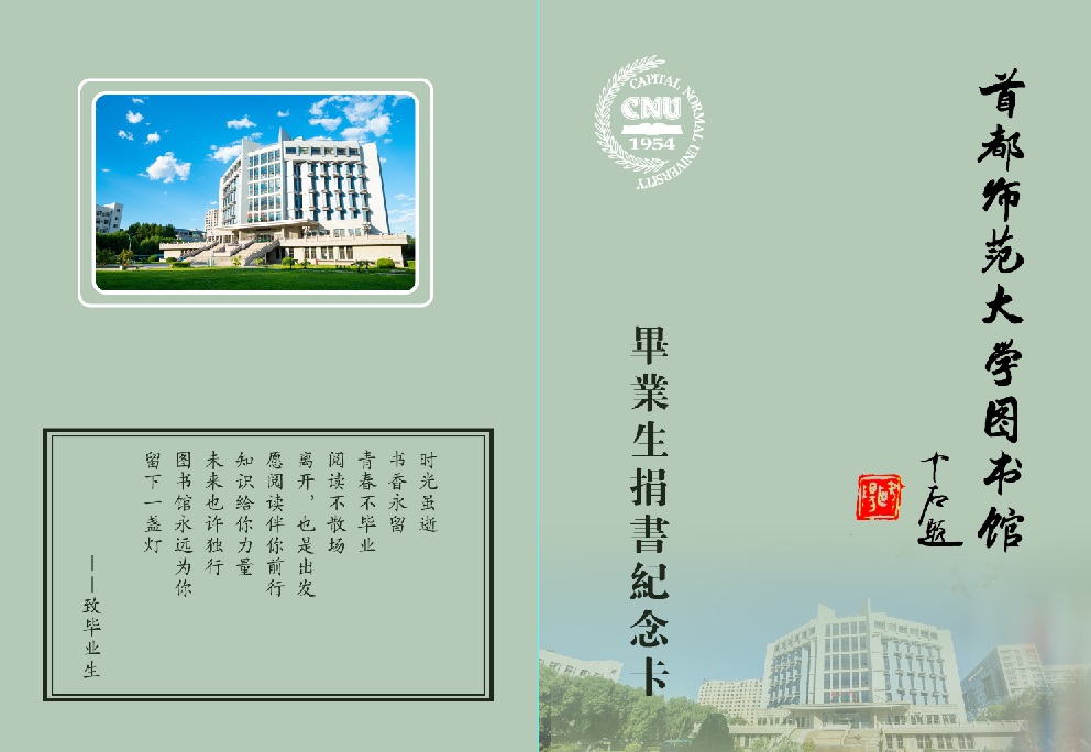 为弘扬环保理念、倡导资源共享,首都师范大学图书馆流通阅览部于4月至6月举办了“旧书寄语 情留母校——2025届毕业生旧书捐赠活动”。活动期间,共收到59位同学捐赠的图书385册,其中8位同学捐赠10册以上,最多捐赠18册。每位捐赠者均获得了图书馆赠送的精致捐书纪念卡,捐赠5册及以上的还获得了纸质精美毕业纪念册。活动吸引了部分教师家属的慷慨捐赠。