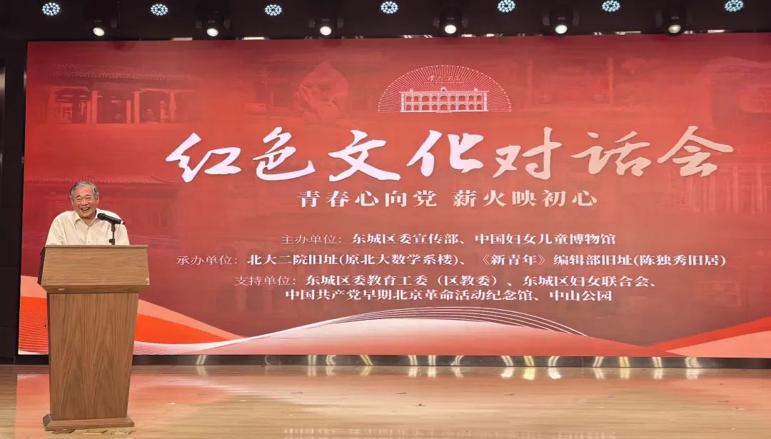 为庆祝中国共产党成立104周年,日前,由东城区委宣传部、中国妇女儿童博物馆主办,北大二院旧址(原北大数学系楼)、《新青年》编辑部旧址(陈独秀旧居)承办的“青春心向党 薪火映初心”——东城区“红色文化对话会”第三场活动在美后肆时景山市民文化中心举行。活动聚焦弘扬伟大抗战精神,深入贯彻落实中央、市委关于加强和改进未成年人思想道德建设的文件精神,分为看见·红色记忆、传承·精神永续、奋斗·启航未来三个篇章,通过“历史讲述+实践案例+榜样引领”,让红色文化从“书本”走向“生活”,引导青少年传承红色基因,赓续红色血脉,争做担当民族复兴大任的时代新人。东城区相关单位代表及中小学生代表共计100余人参加活动。