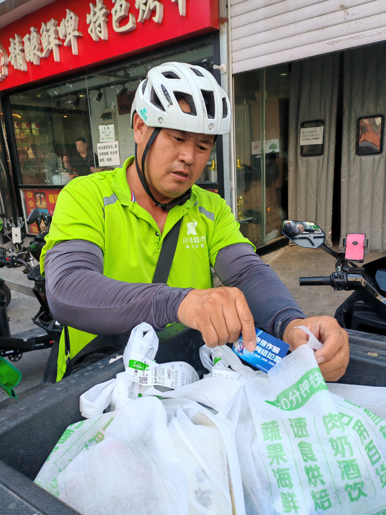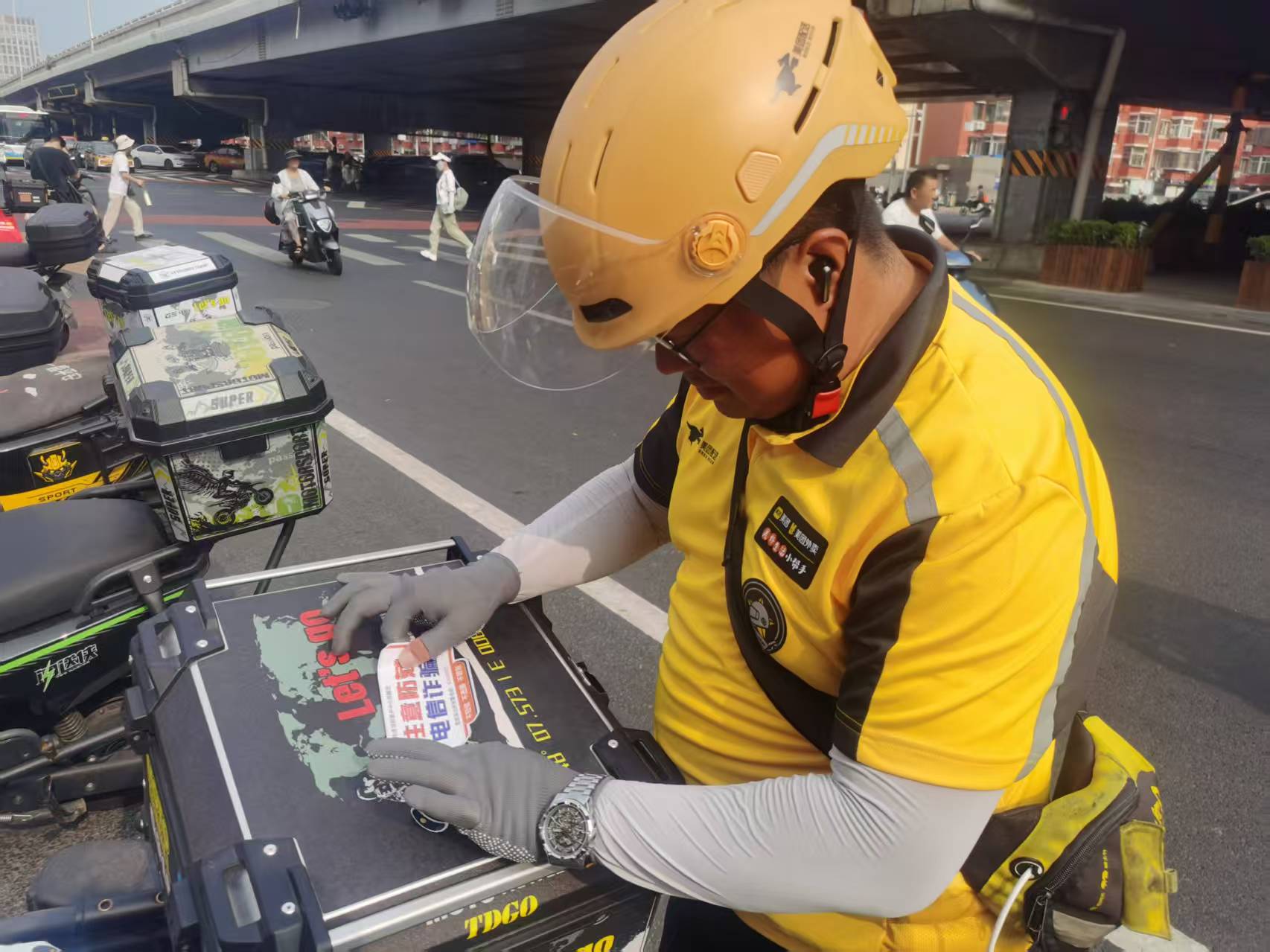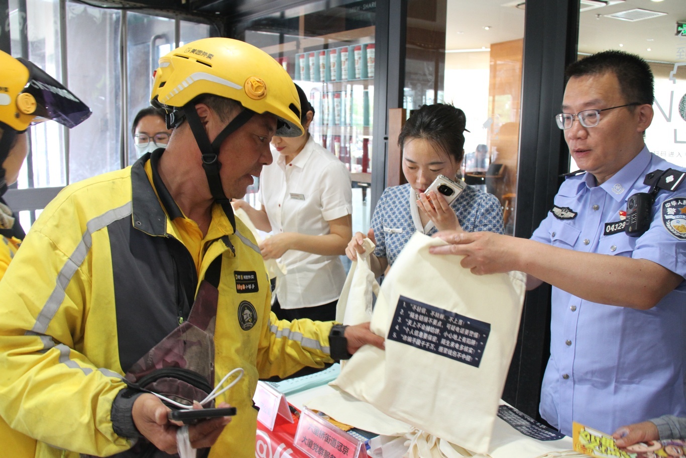 经过广泛宣传,小哥们主动把宣传贴纸贴在电动车上,将反诈卡片放进商品包装里,将防骗提醒随商品一起送出,“我们送的不只是快递、外卖、商品,还有一份防骗提醒。”