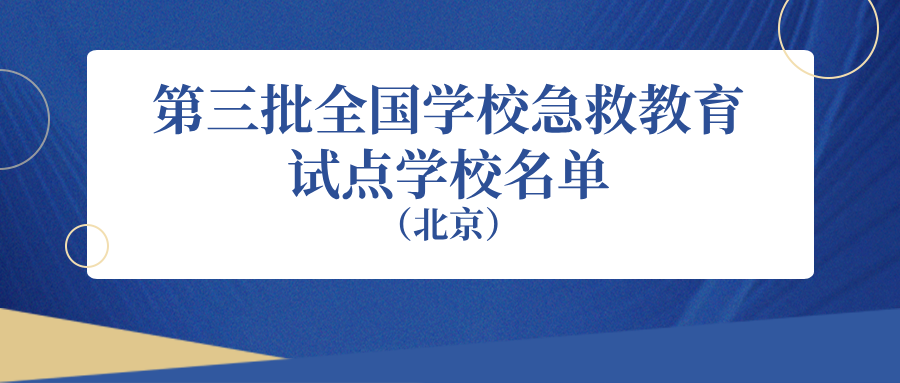 近日,经学校申报、省级教育行政部门推荐、专家复核、公示等程序,教育部确定中国人民大学等2926所学校为第三批全国学校急救教育试点学校,北京有80所学校入选。其中石景山区北京市石景山区金顶街第二小学入选。具体名单一起来看↓↓↓