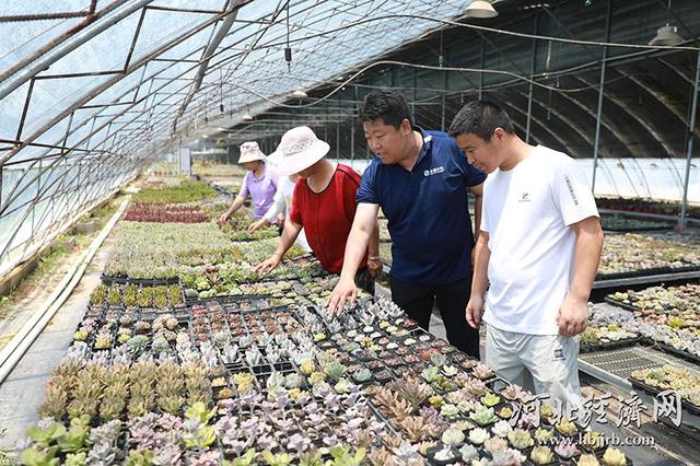 王宇(右二)向种植户分享多肉管理要点。河北经济日报记者 李佳琦 摄