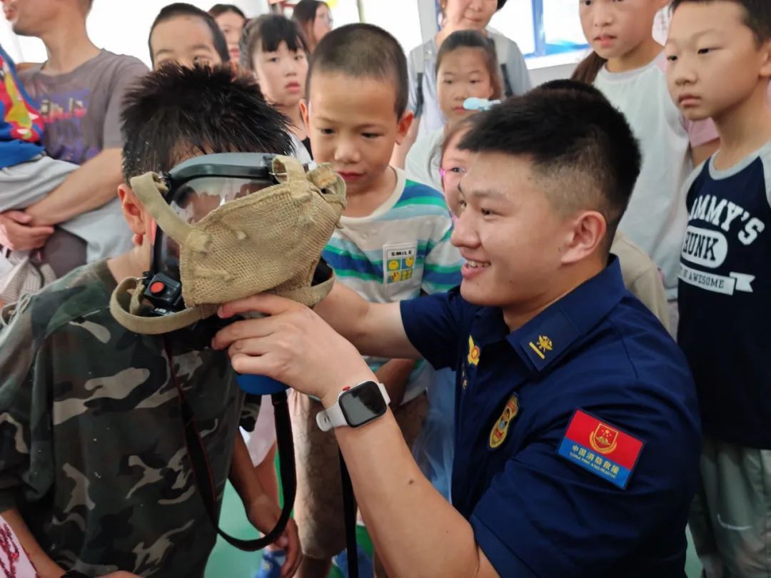 在安全员的全程看护和指导下,青少年们试戴了封闭的防火面罩,亲身体验感受“逆行者”的日常。“防火面罩好闷呀!消防员叔叔灭火时真不容易!”一位刚脱下防火面罩的小男孩抹着汗感叹道。