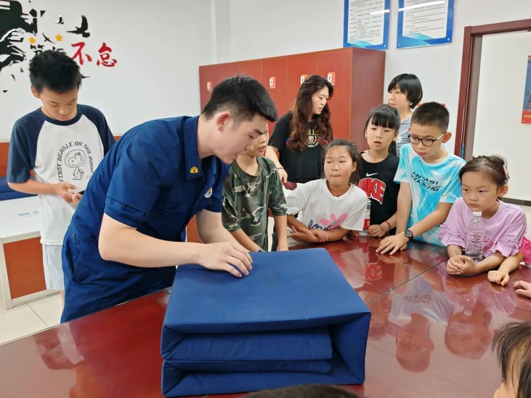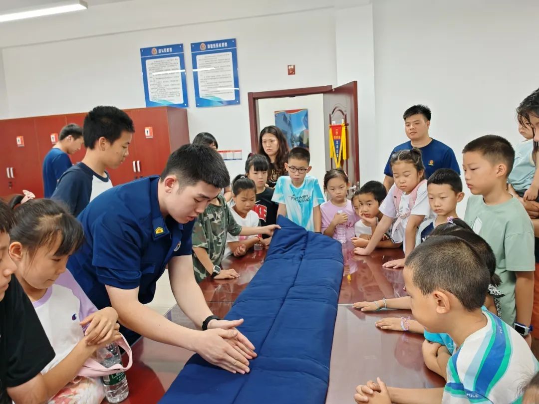 推开消防员的宿舍门,棱角分明的“豆腐块”被子、一尘不染的地面、摆放有序的生活用品映入眼帘,处处体现着消防员的纪律性和严谨作风。消防员还现场演示了叠被子的技巧,青少年们学得有模有样,也纷纷动手尝试,在实践中感受自律和规范的重要性。