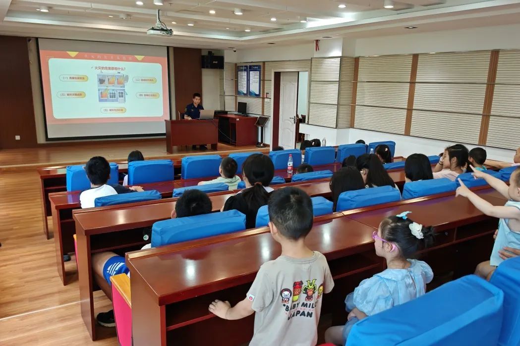 “我家住高层,如果起火了应该怎么正确逃生呢?”青少年们聚精会神,积极举手提问,消防员耐心解答,现场互动热烈,学习氛围upupup!