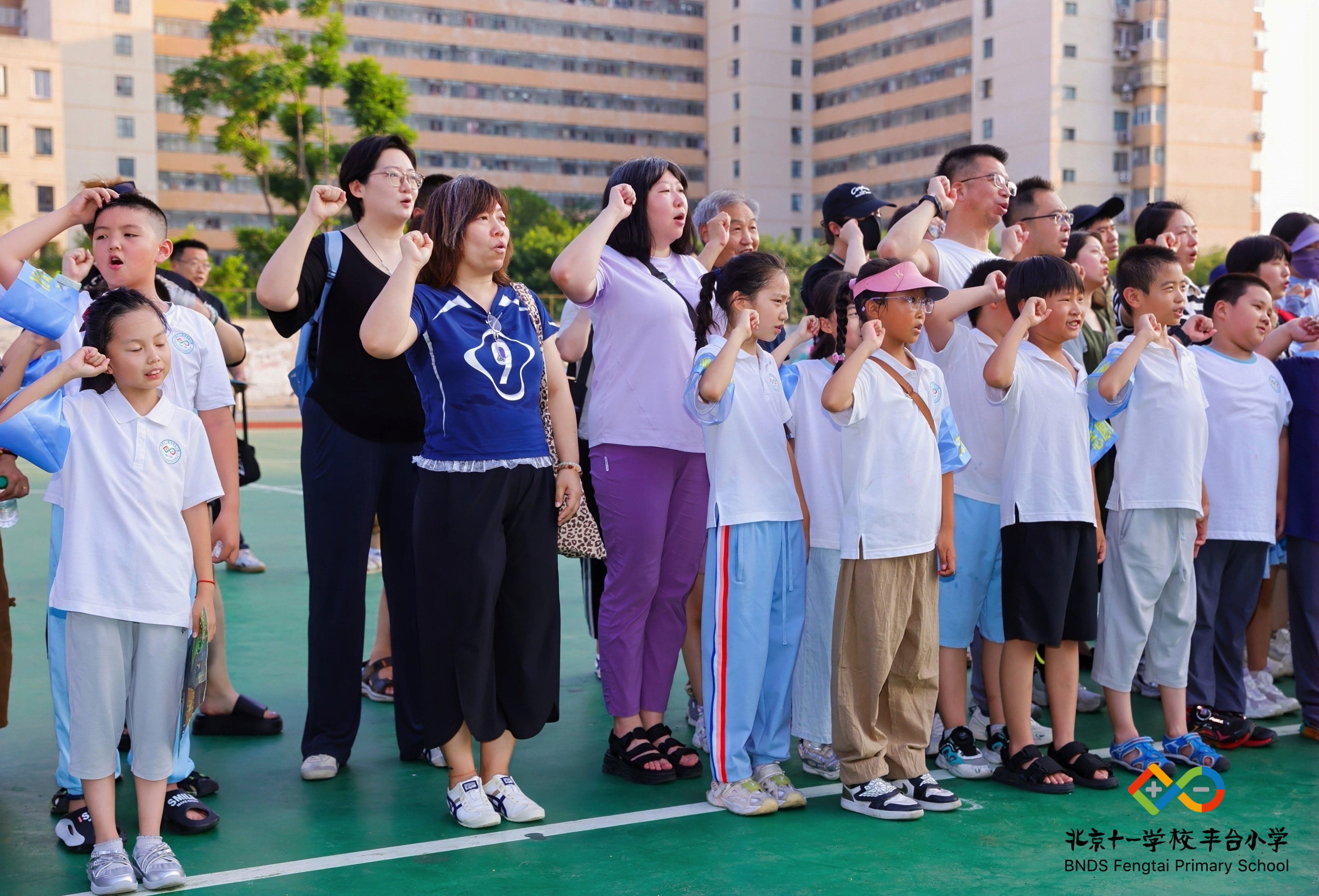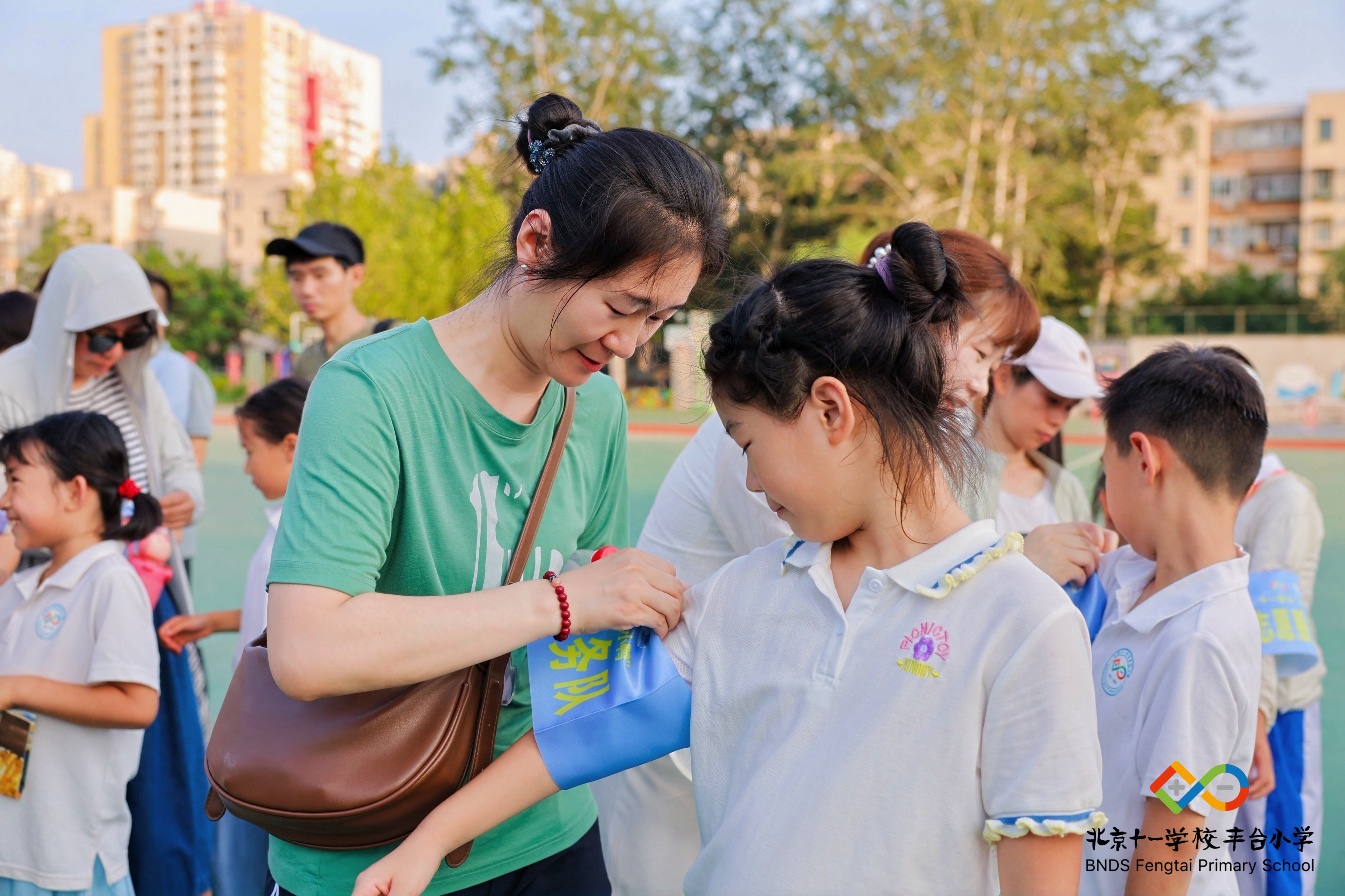 在全体队员的注目下,北京十一学校丰台小学书记、校长曹君与“凉小鸭” 志愿服务队总队队长马静,郑重地将凝聚着掌印与希望的队旗授予十一丰小 “凉小鸭”志愿服务队队长代表。旗帜挥舞间,使命已然在肩!家长们为孩子佩戴专属袖标时,指尖的温度传递着“共同守护”的承诺;“我誓做自然环保的倡导者、前行者、引领者,与大家团结协作,探索自然奥秘,践行志愿服务……”集体宣誓的声音清亮而坚定,回荡在校园上空。
