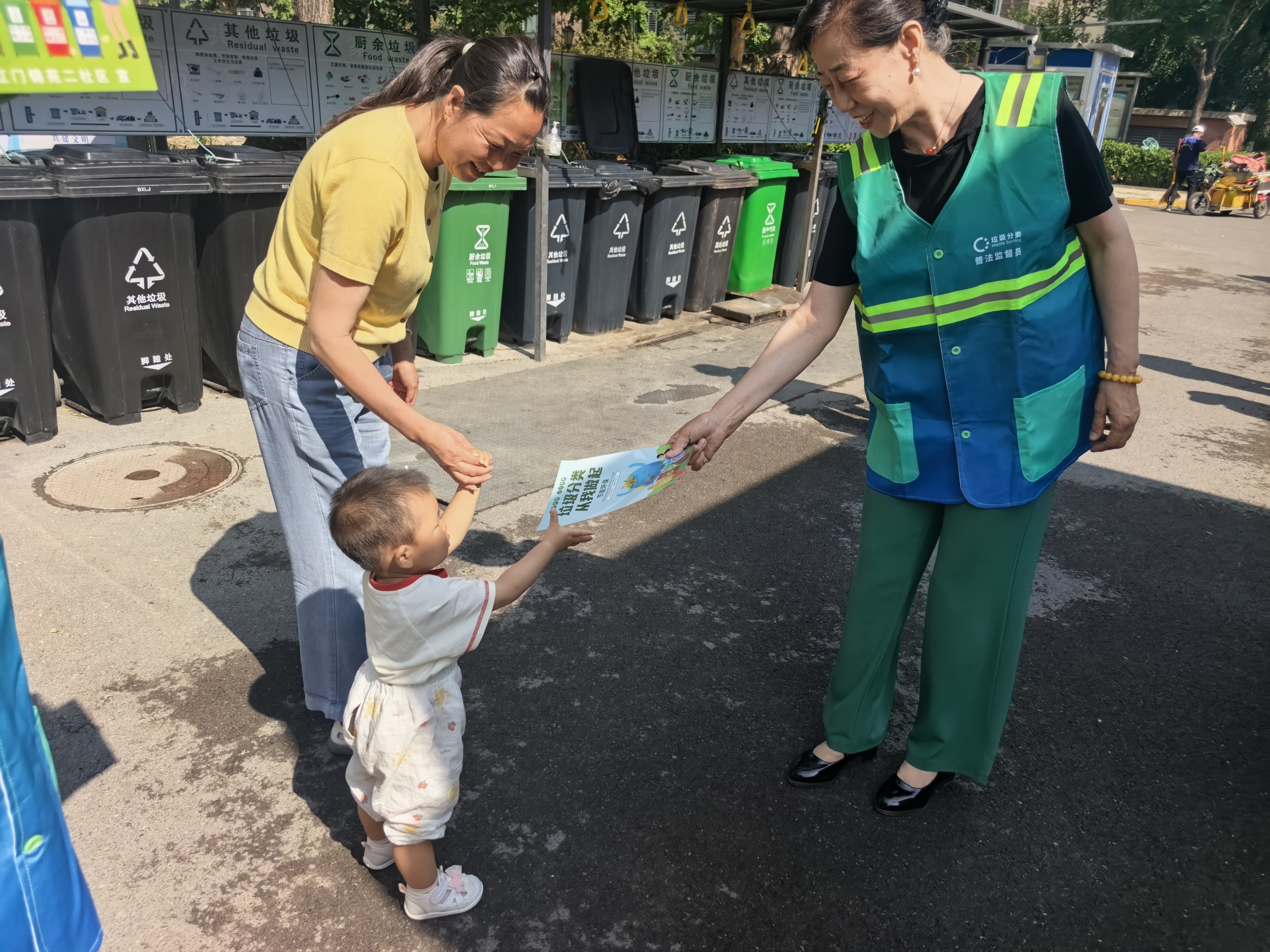 在大红门锦苑二社区,垃圾桶站前的“志愿绿”成为亮眼风景。投放高峰时段,身穿垃圾分类马甲的志愿者主动靠前,耐心指导居民正确分类,及时纠正错误投放行为。“以前分不清的垃圾,现在有志愿者帮忙,分类更准确了!”居民们对志愿者的贴心服务赞不绝口。持续的桶前值守,让越来越多的居民养成了自觉分类的好习惯,也推动社区环境显著改善,以“小行动”汇聚环境保护“大能量”。