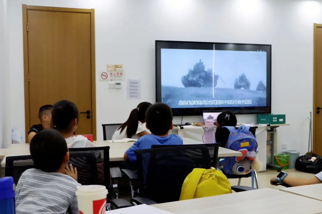 活动伊始,青少年们集体观看了《卢沟桥事变》历史纪录片。珍贵的历史影像将大家带回那段烽火岁月,中华儿女不屈不挠的抗争精神深深打动了在场的每一个同学。