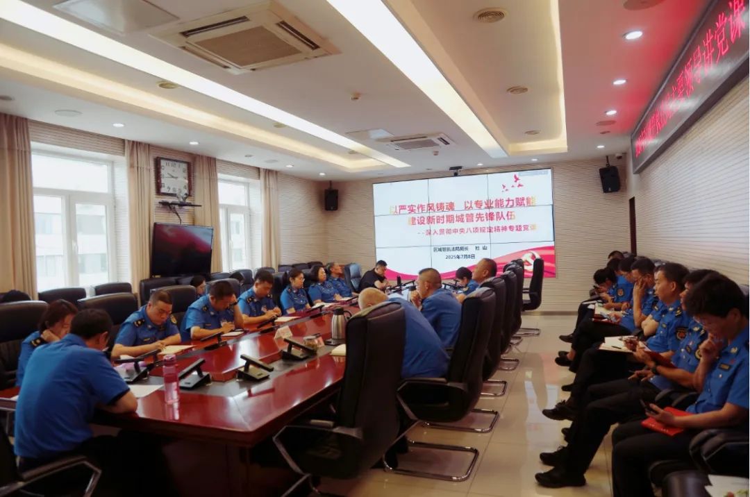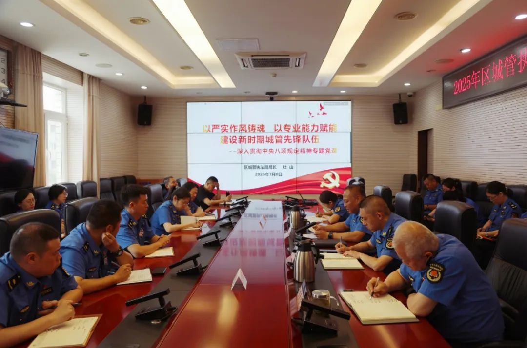 杜山同志要求:一是要提高站位,深刻领会贯彻中央八项规定精神的重要意义。中央八项规定是新时代党的作风建设的“金色名片”,是锻造政治灵魂、提升履职能力、破解现实难题的关键抓手。结合东城区首都功能核心区定位,要从落实“首善标准”、破解系统性问题、服务高质量发展三方面深化认识,以作风建设护航东城发展。二是要深学细悟,把握中央八项规定精神的核心要求。全局党员干部要学深悟透“以人民为中心”的根本立场、“实事求是”的思想路线、“与时俱进”的创新思维、“清正廉洁”的纪律要求,树牢执法为民宗旨,弘扬务实作风,提升专业能力,严守纪律底线,将中央八项规定精神转化为行动指南。三是要狠抓落实,推动作风建设与专业能力双提升。以学促改转作风,聚焦基层减负、问题整改、全员培训抓落实;以变求新提效能,深化评估管理、规范执法检查、强化案卷评查、下沉调研督导;以制固本强根基,修订完善制度体系,构建长效管理机制,提升队伍统筹管理水平。