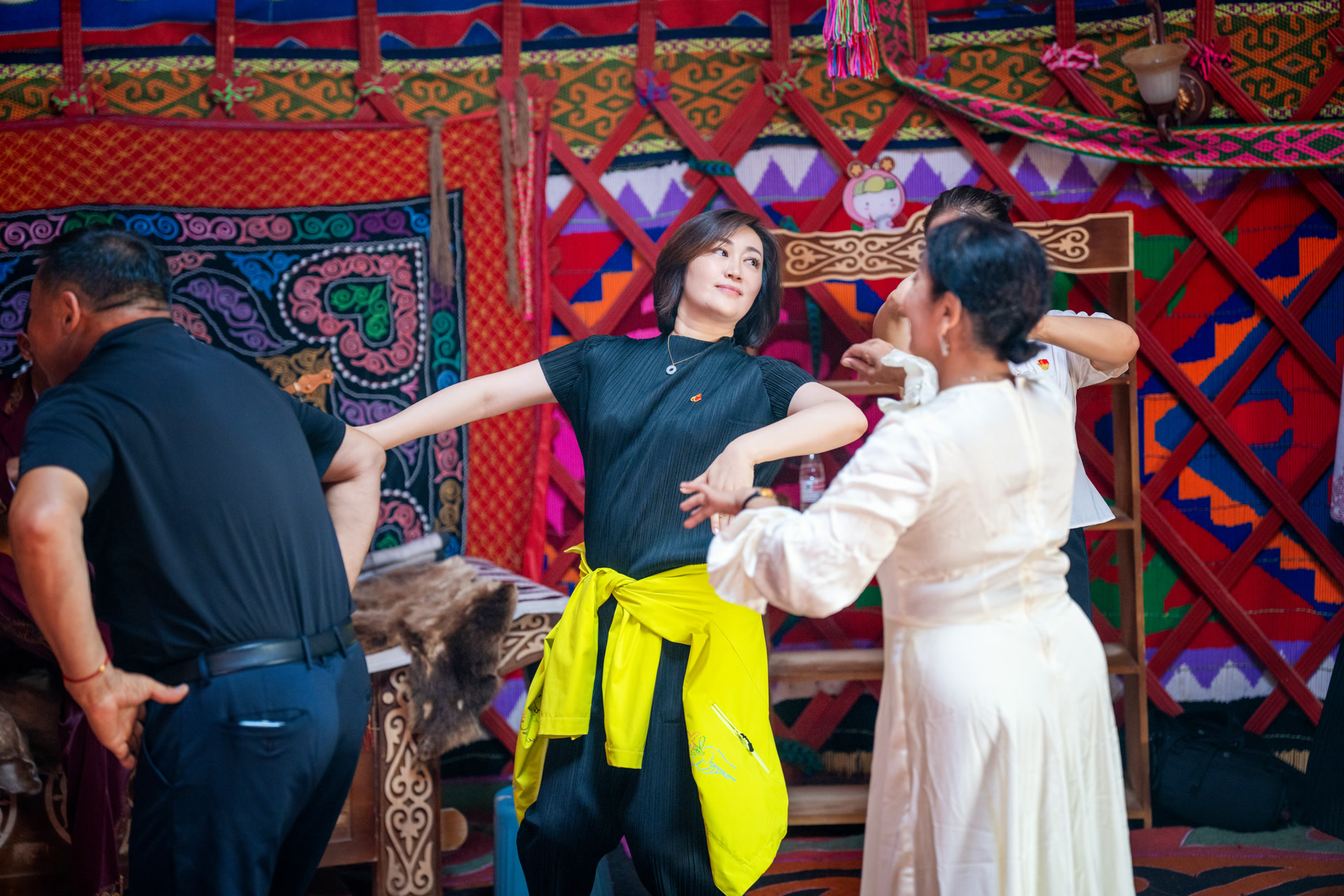 深入哈巴河县那仁牧场,广袤的草原风光与淳朴的哈萨克族生活场景跃然眼前,采风团成员围坐在草地上,与哈萨克族牧民深入交流,了解牧民生活近况。牧民们告诉采风团,他们正在扩建骆驼圈养基地,为骆驼奶的生产做好准备,如今政策好、旅游兴旺、交通便利,订单纷至沓来。言语间透露出精神与物质的双重富足,以及对美好生活的向往与期待,也让采风团成员深切感受到边疆乡村蓬勃发展的强劲活力。