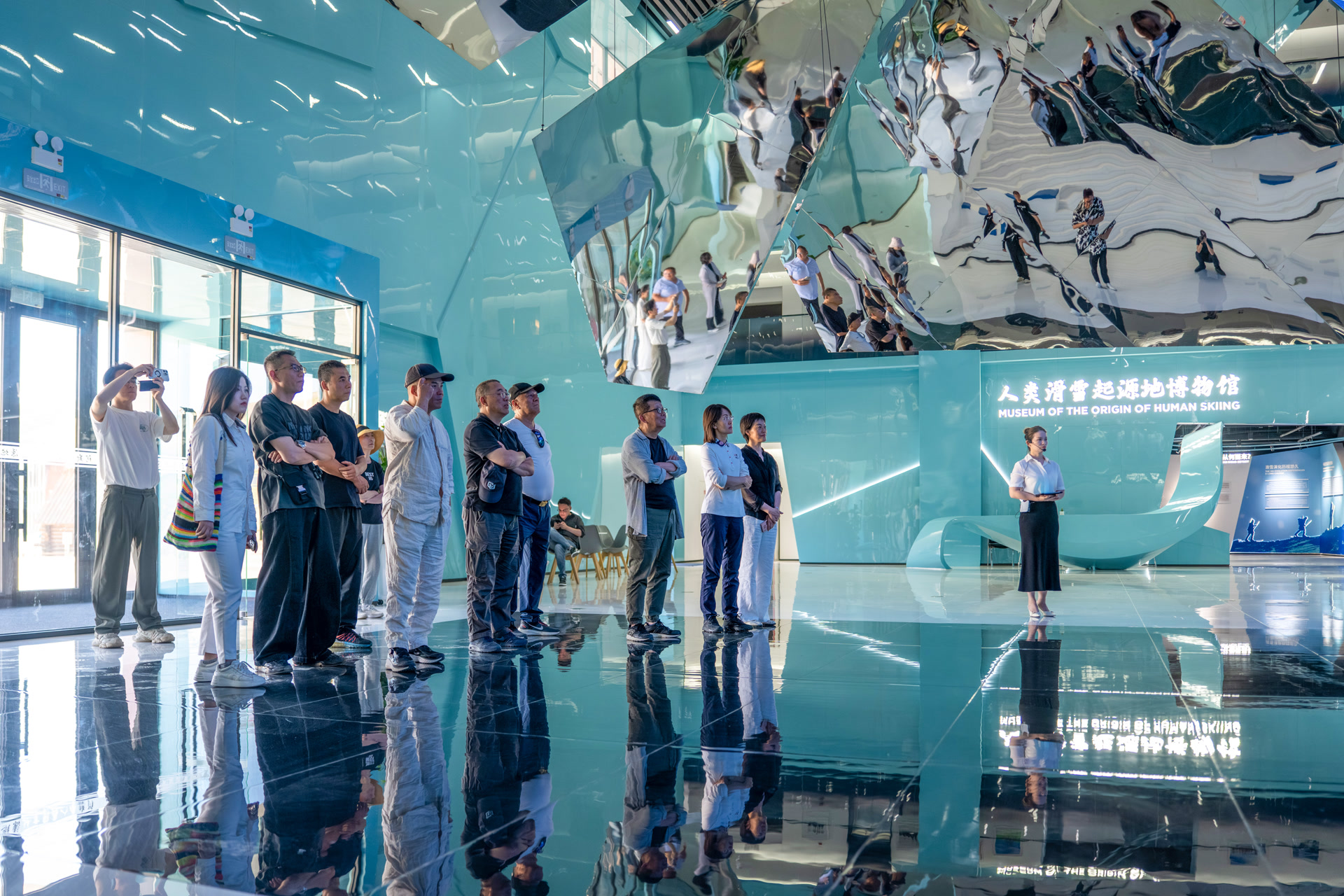 聚焦独特的冰雪文化,采风团探访了阿勒泰将军山滑雪场,在“人类滑雪起源地”的光环下,参观了人类滑雪起源地博物馆,并亲切探访古老马皮滑雪板制作非遗传承人。那些用整张马皮包裹、以木为骨的传统滑雪工具,无声地印证着阿勒泰作为世界滑雪文明发祥地的悠久历史,为冰雪运动题材或历史传奇故事提供了极具视觉冲击力和文化辨识度的原型素材。