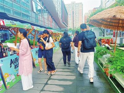 值得一提的是,自7月3日起,每周不同主题的创意市集成为社区汇聚人气的另一大亮点,为硬核的科技底色增添了斑斓的人文色彩。记者探访时,偶得工坊的雕版印刷机正拓印着城市风景明信片,传递古朴韵味;手工木雕摊位前,憨态可掬的木质机器人玩具吸引着科技青年们驻足把玩;手作摊位上的银饰手串,巧妙融入了多巴胺审美曲线,科技感与艺术感并存。还有3D打印潮玩、智能香薰蜡烛等特色摊位,无不清晰勾勒出科技与生活美学共生共荣的图景。