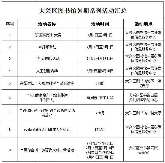 暑期已至,如何让孩子远离屏幕,在书香与探索中度过一个充实又快乐的夏天?大兴区图书馆精心策划系列阅读活动正式上线。近100场精彩活动覆盖文化阅读、艺术创造、科技探索等多个领域,为不同年龄段的读者开启一段难忘的知识与乐趣之旅。这个夏天来图书馆解锁成长新知识!