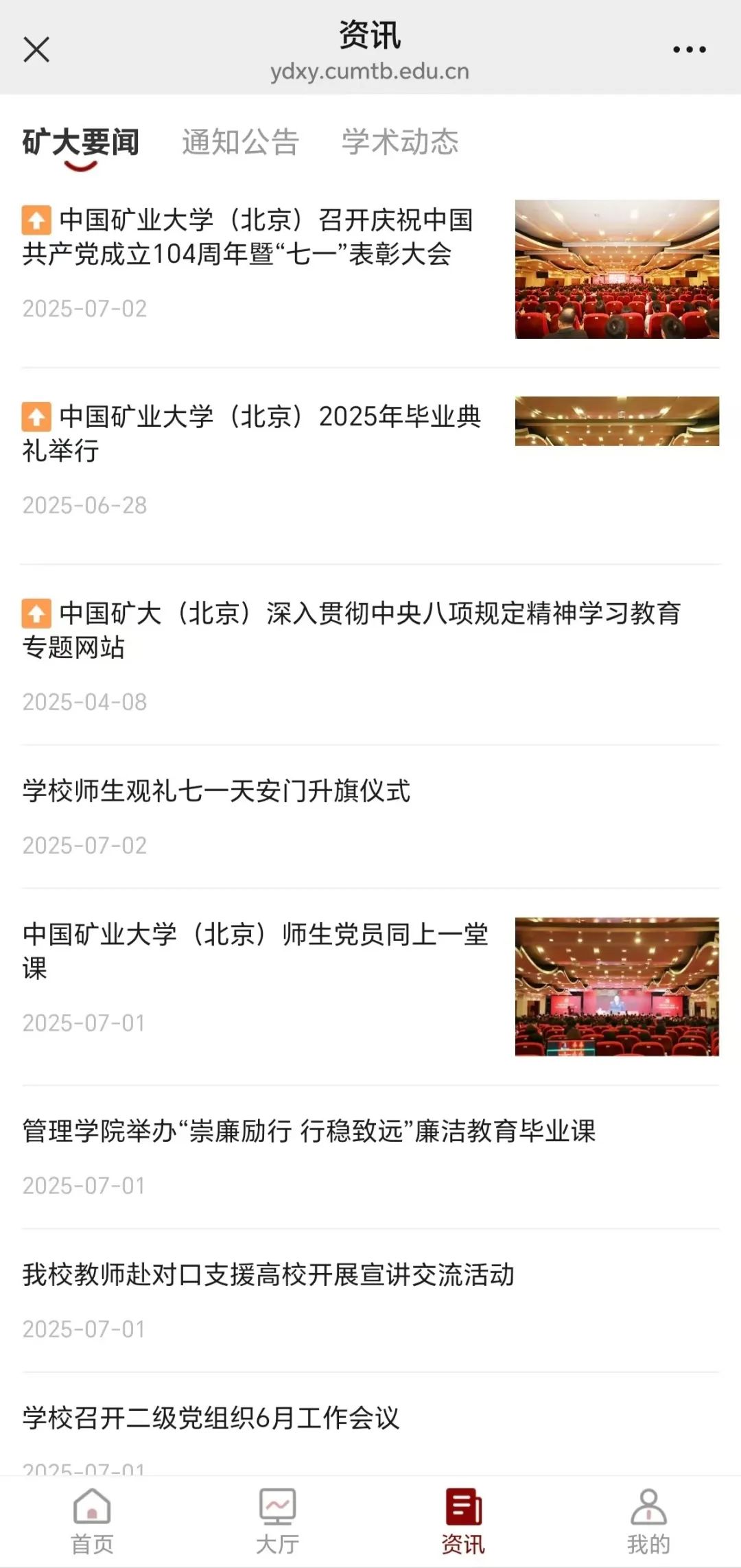 集中统一的校园资讯平台,全面覆盖矿大要闻、公共通知及学术动态等。师生可以自由查阅,节省查询时间。