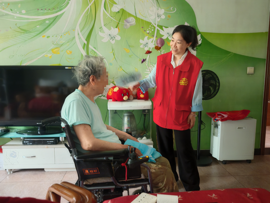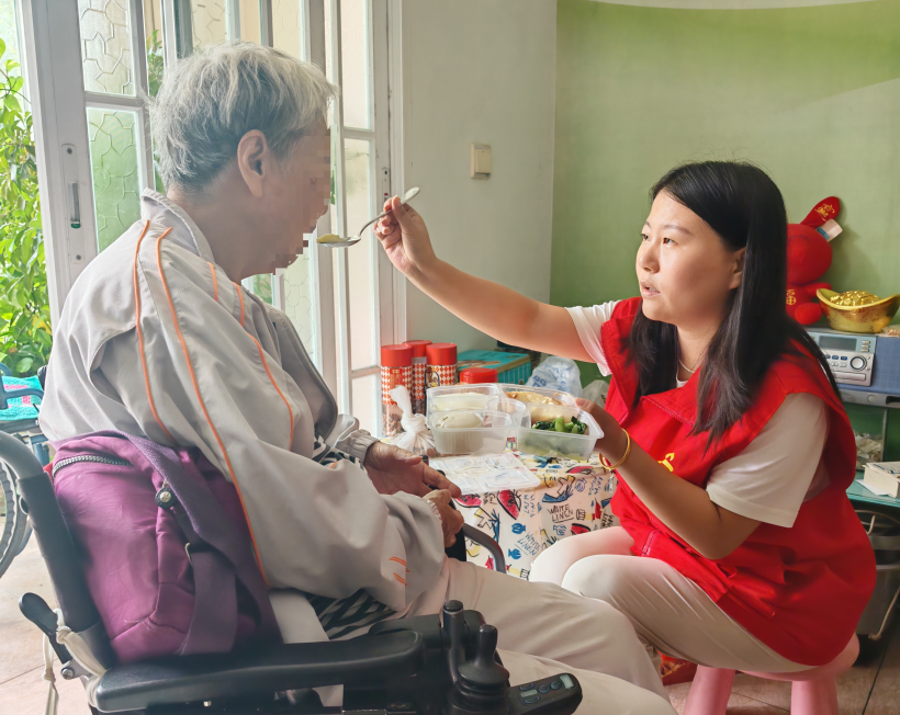 时至中午,考虑到宋阿姨尚未进食,杨靖雯在与保姆沟通后,特意为老人做了一碗鸡蛋羹,一勺一勺细心喂食。三位社区工作人员化身“临时家属”,全程陪伴看护宋阿姨。直至数小时后,亲属联系的小时工赶到接手照料,社区工作人员详细交代了老人的身体状况与注意事项,确认一切妥当后才放心离开。