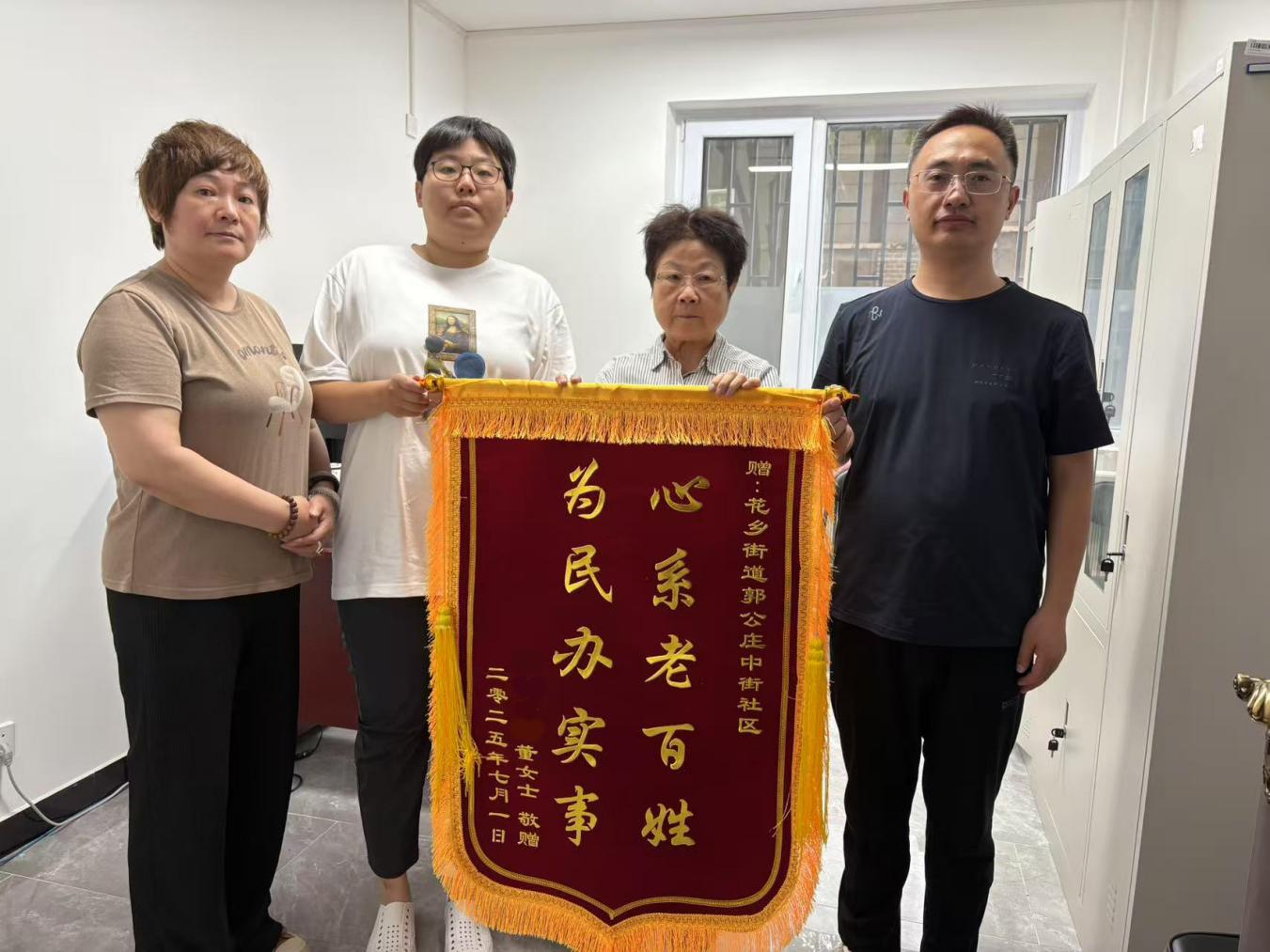 日前,家住丰台花乡街道郭中社区5号楼的董阿姨,满怀感激地向社区表达谢意。多年来一直困扰她家的楼顶设备噪音问题,终于得到了彻底解决。为表感激,她将一面绣有“心系老百姓,为民办实事”的锦旗郑重地送到郭公庄中街社区居委会。这一暖心成果得益于郭中社区依托“速应邻聚厅”平台,精准高效解决居民急难愁盼问题,更彰显了该品牌在建设过程中凝聚各方力量的独特效能。