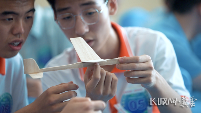 参赛选手们在进行手掷滑翔机制作。长城网·冀云客户端记者 张超 摄