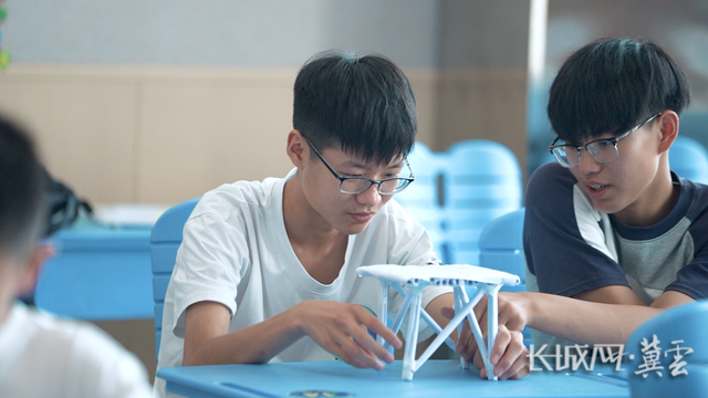 参赛选手们在制作纸桥。长城网·冀云客户端记者 张超 摄