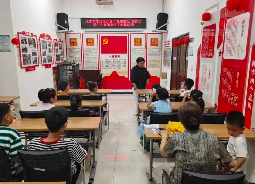近日,永华南里社区新时代文明实践站内人头攒动,“童趣献礼 感恩父爱”暑期手工活动在此热闹开展。20余名小朋友在家长陪伴下,用环保卡纸、LED灯带和彩绳制作发光相框,用独特的方式为父亲送上满含心意的礼物。